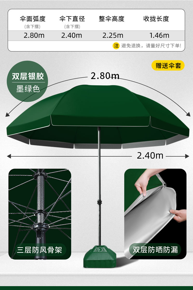 • [이중우산천 + 삼중우산걸이] 2.8m 중형 짙은 녹색 - 베이스 없음