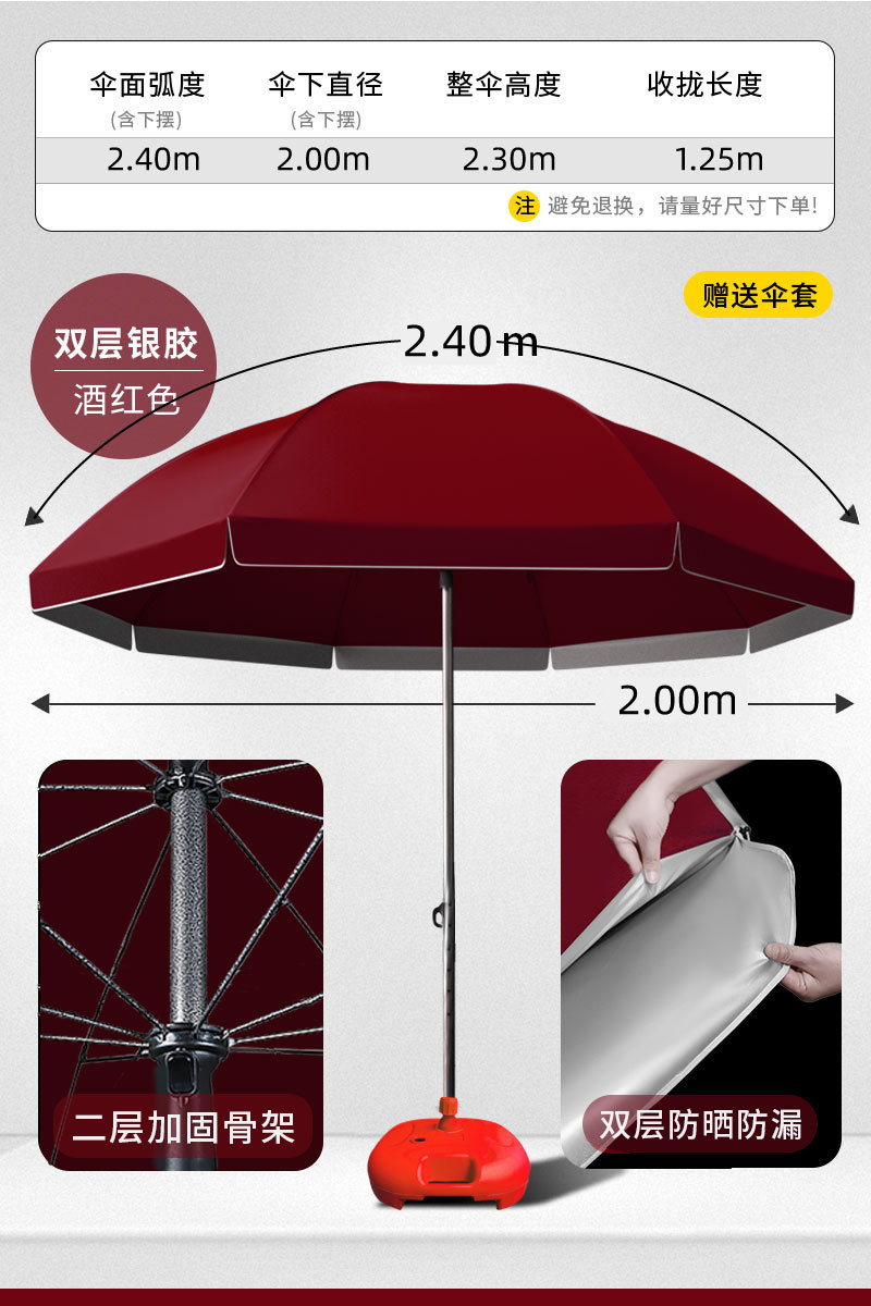 • [더블 레이어 자외선 차단 및 누수 방지] 2.4m 스몰 버건디 - 베이스 없음