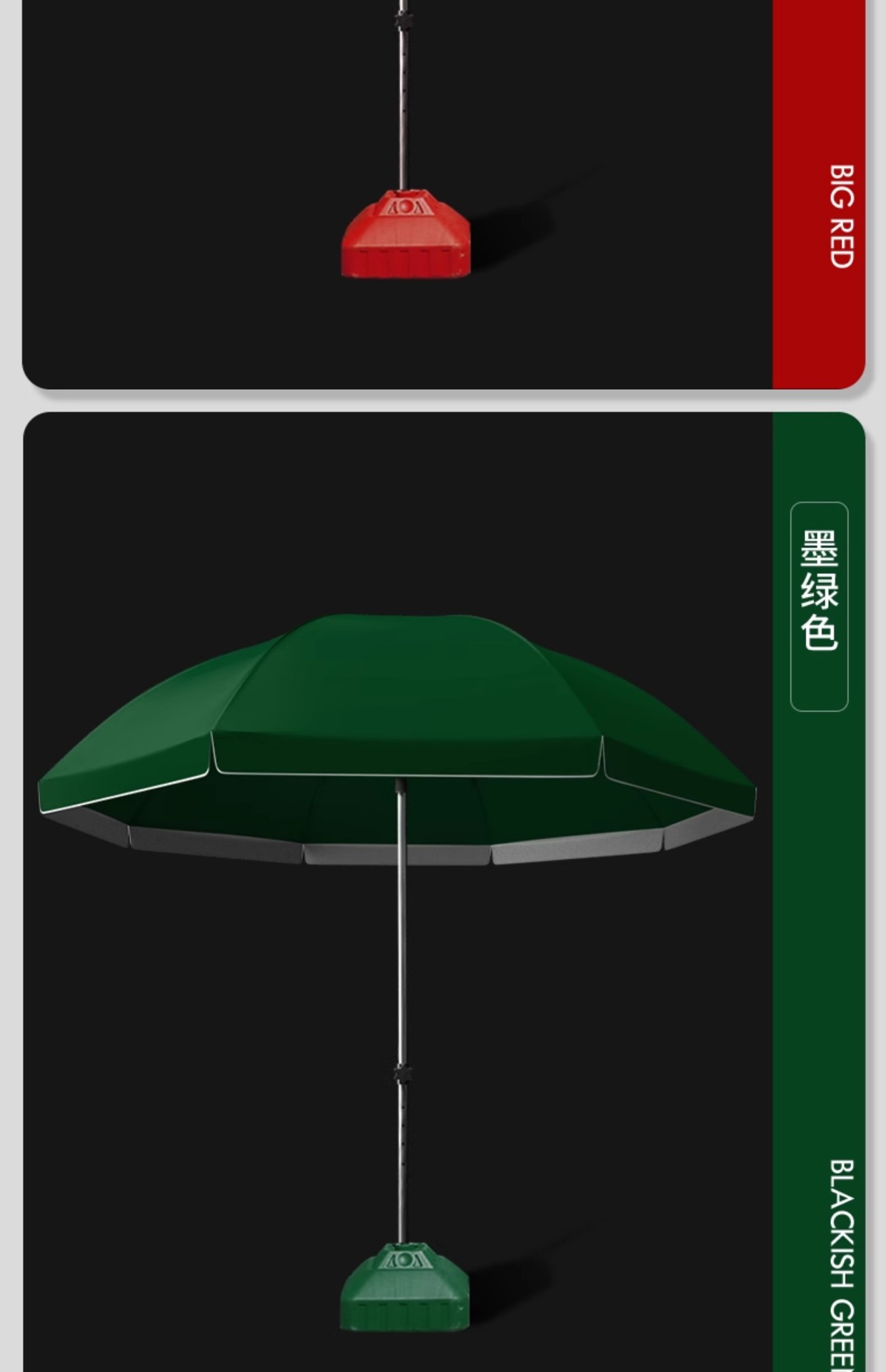 • [이중우산천 + 삼중우산걸이] 3.6m 특대형 짙은 녹색 - 베이스 포함