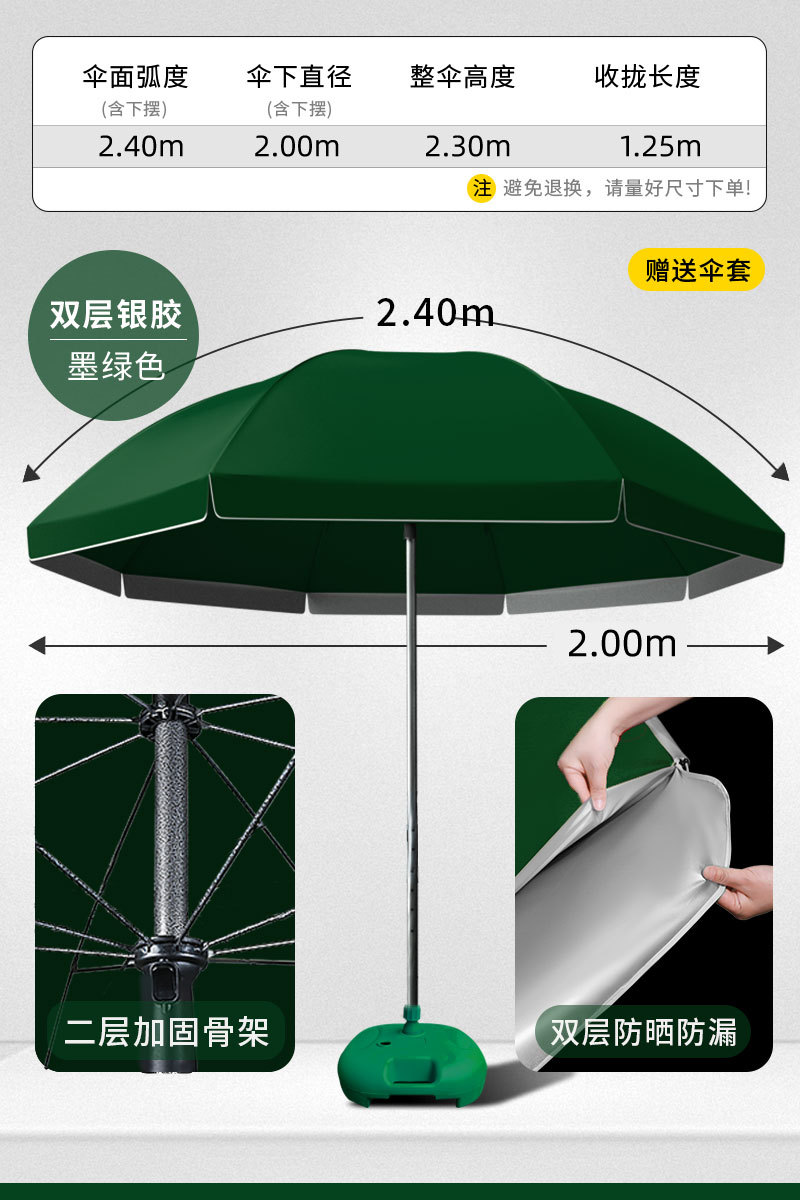 • [이중 자외선 차단 및 누수 방지] 2.4m 작은 짙은 녹색 - 베이스 포함