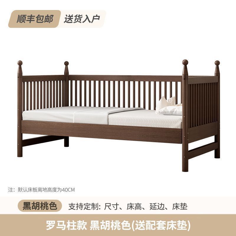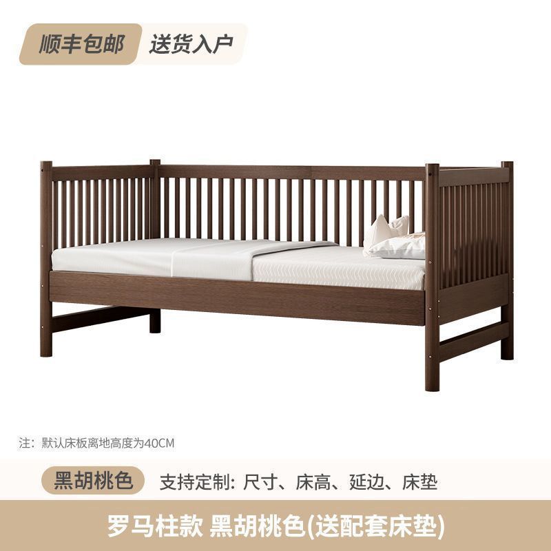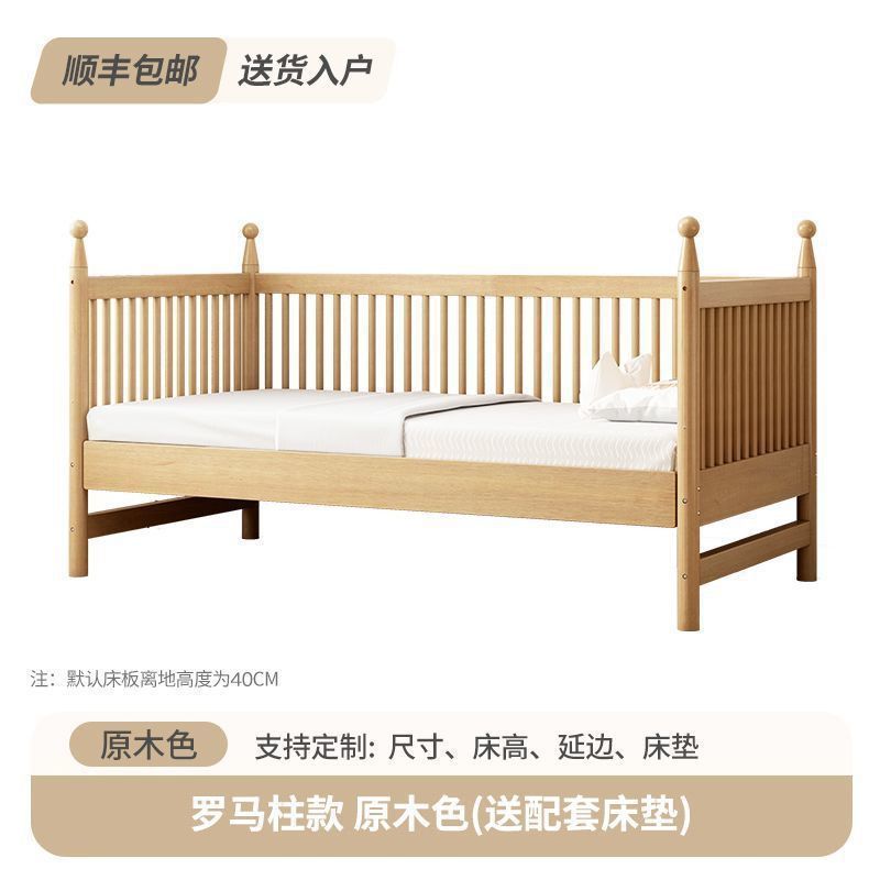 단단한 나무 어린이 접합 침대 가드 레일이있는 확장 침대 아기 침대 소년 소녀 싱글 침대 옆 접합 대형 침대