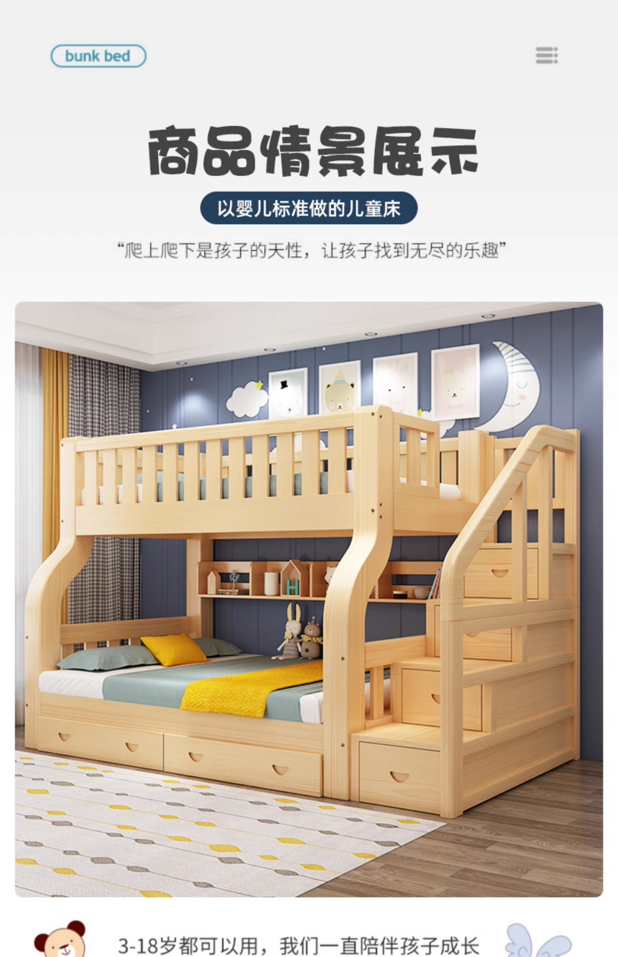 이층침대, 다기능 원목 이층침대, 어린이 이층침대, 성인용 이층침대