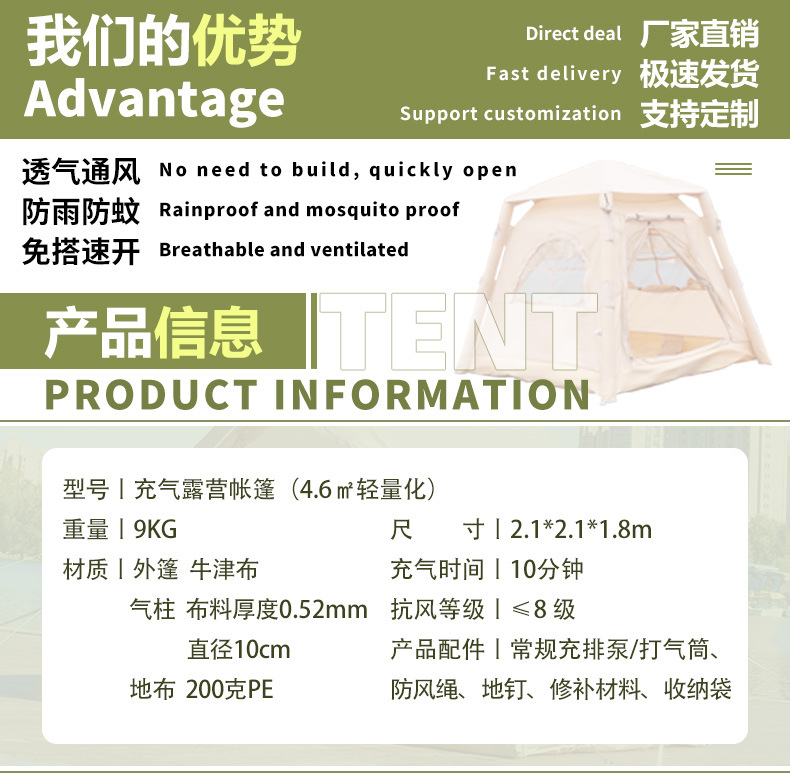 야외 캠핑 및 캠핑 장비를 위한 일체형 휴대용 풍선 텐트, 밤새도록 비와 햇빛 차단, 텐트 설치 없음스토어 가기