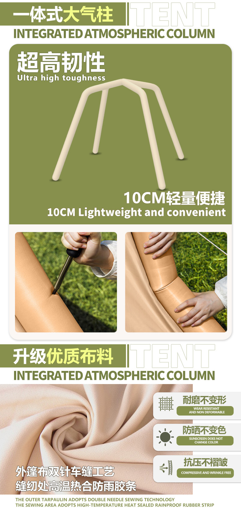 야외 캠핑 및 캠핑 장비를 위한 일체형 휴대용 풍선 텐트, 밤새도록 비와 햇빛 차단, 텐트 설치 없음