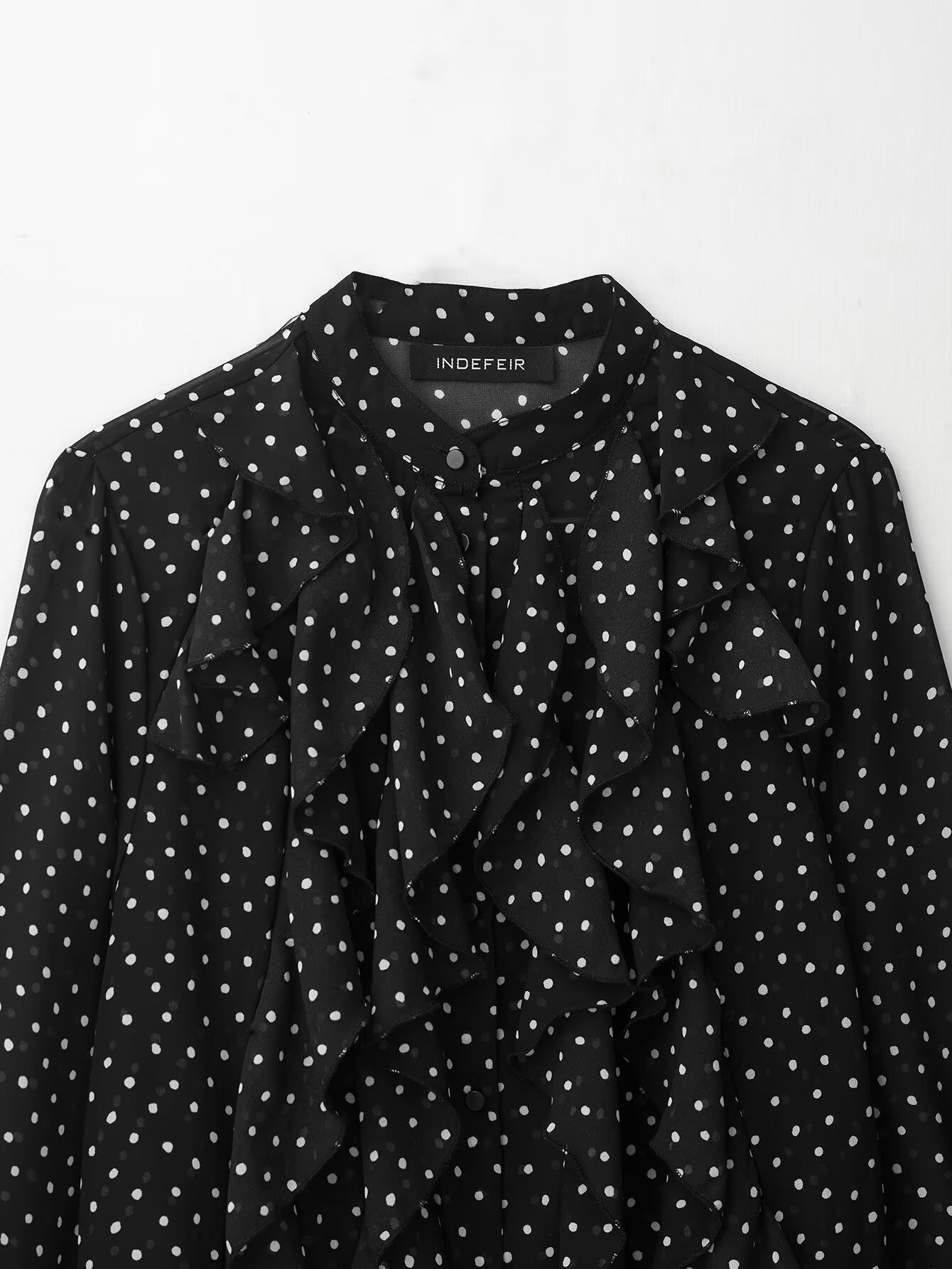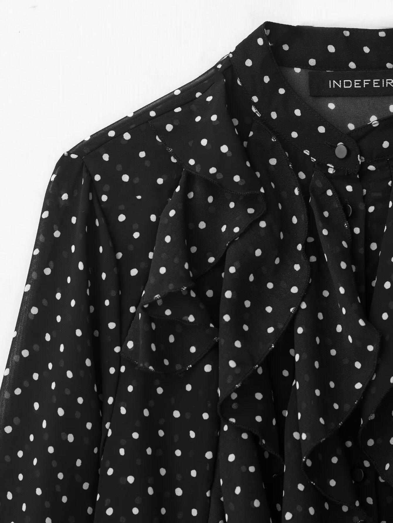 유럽과 미국의 대외 무역 도매 2025 새로운 여름 여성 패션 다목적 레이어 장식 폴카 도트 셔츠 Y13-2246스토어 가기