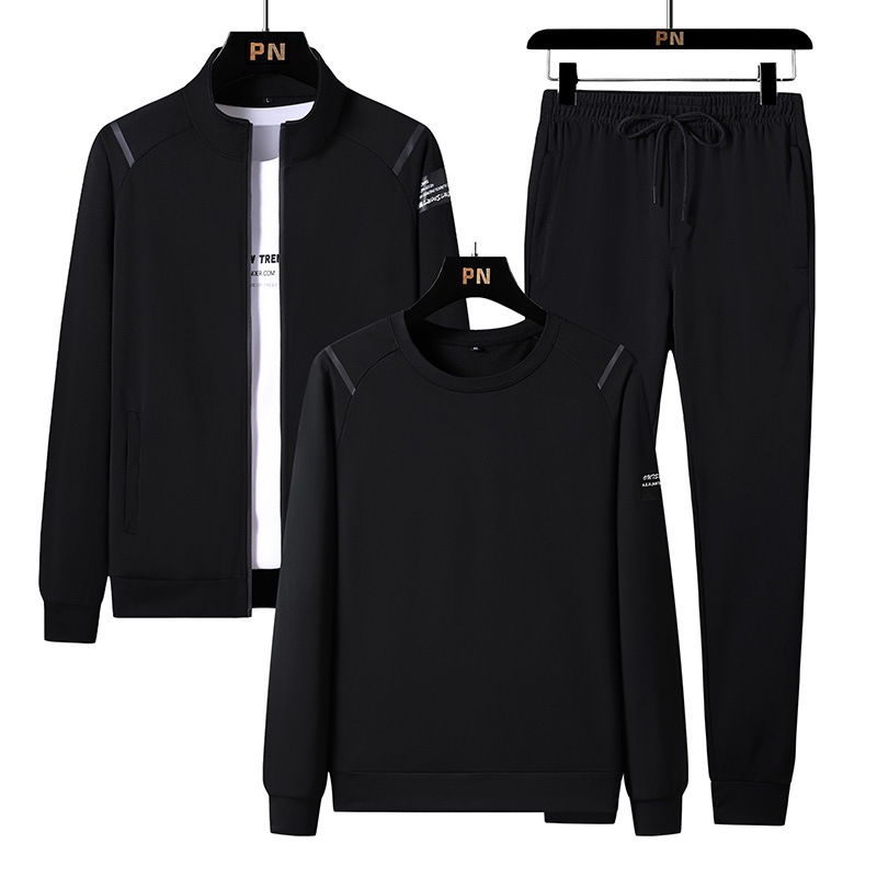 국경 간 L-7XL 새로운 봄, 가을 캐주얼 스포츠 정장 남성 스탠드 칼라 카디건 재킷 남성용 긴팔 스웨트 셔츠 3 피스 세트