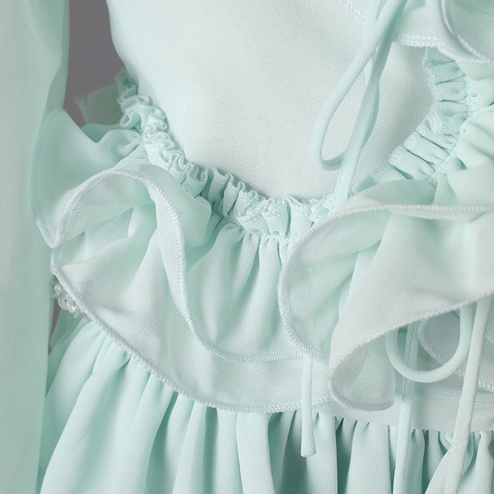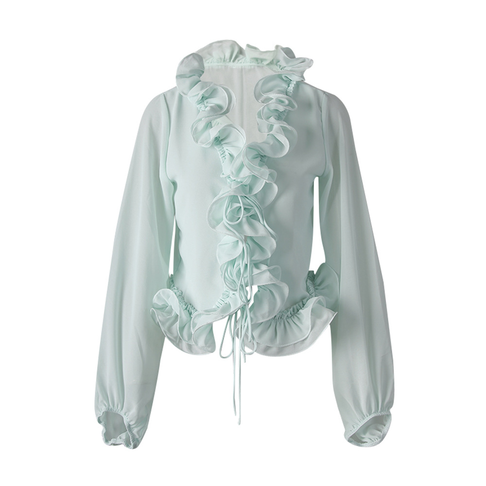 여성을 위한 국경 간 인기 순수 섹시 시폰 러플 슈트, 가을 신상 레이스업 가디건 탑과 반짝이는 다이아몬드 스커트스토어 가기