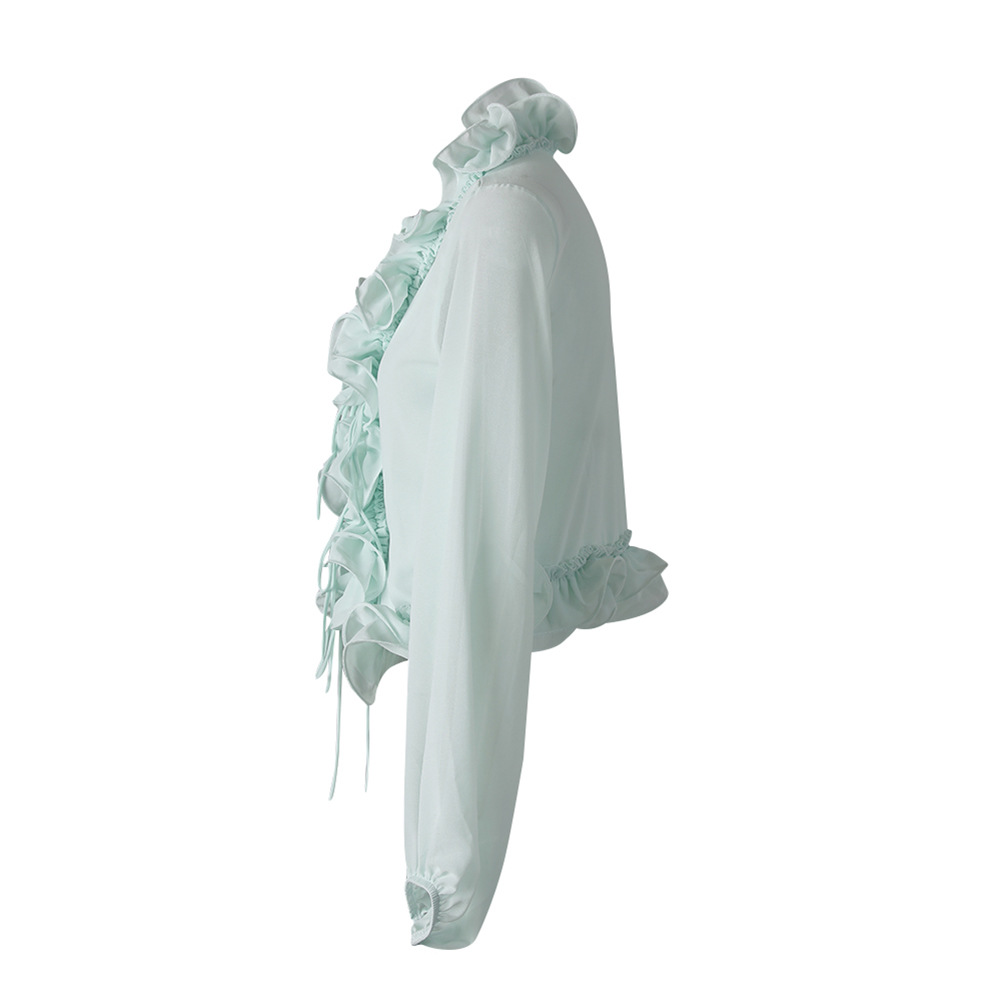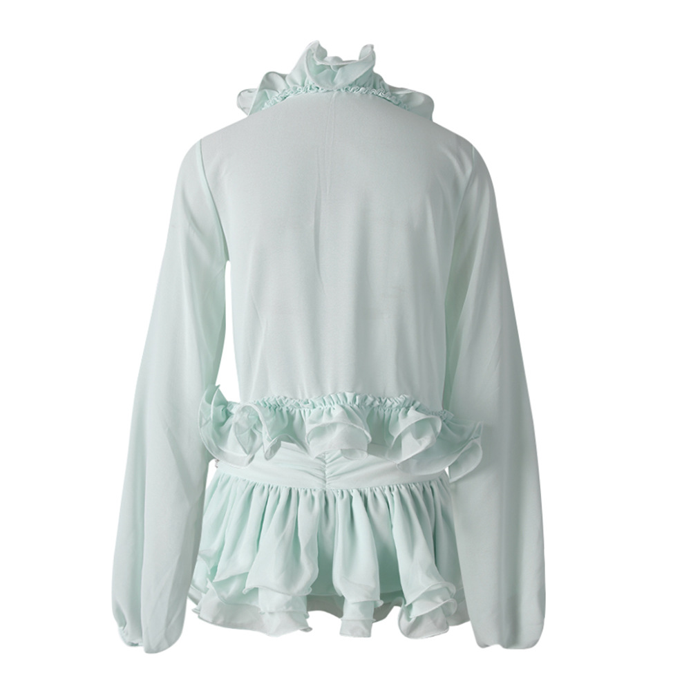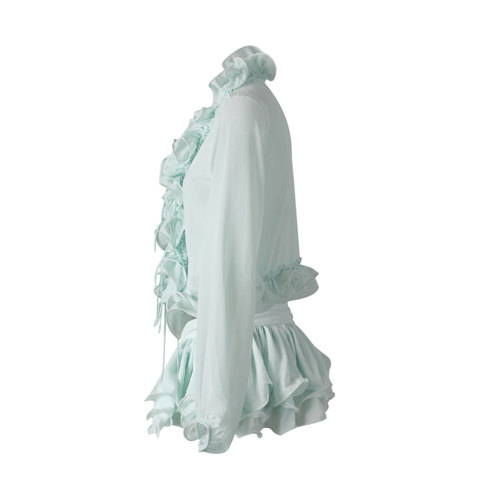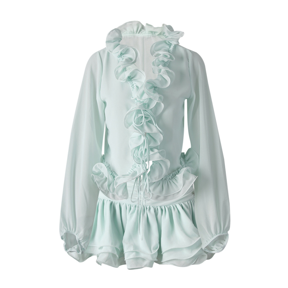 여성을 위한 국경 간 인기 순수 섹시 시폰 러플 슈트, 가을 신상 레이스업 가디건 탑과 반짝이는 다이아몬드 스커트
