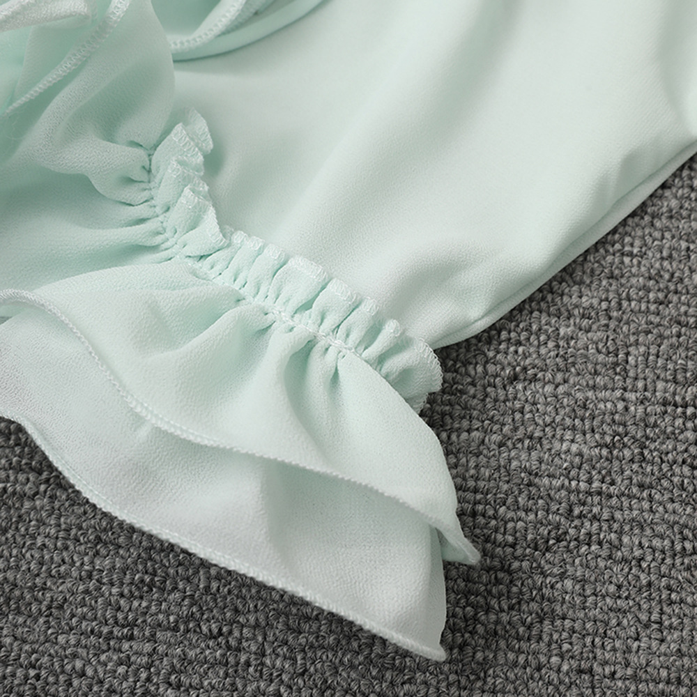 时尚辣妹束腰蝴蝶结蓬蓬短裙搭蕾丝长袖衬衫两件套春季新款套装女