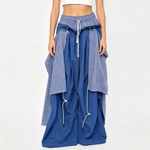 美式时尚设计感双腰头拼接休闲裤女夏季新款可拆屁帘宽松弯刀长裤