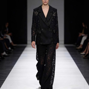 美式个性时尚蕾丝花朵镂空两件套女春季新款西装上衣搭高腰阔腿裤