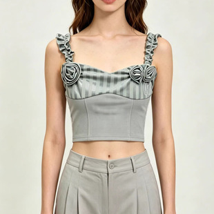 甜酷辣妹风立体花朵松紧肩带性感抹胸夏季新款修身显瘦吊带背心女