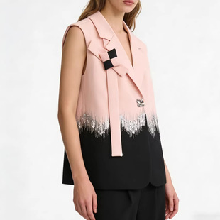 欧美高级感金属流苏上衣女夏季新款无袖宽松显瘦撞色拼接西装背心