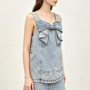 复古做旧水洗牛仔连衣裙女夏季新款小众蝴蝶结宽松显瘦无袖背心裙