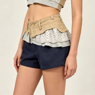 韩版休闲拼接荷叶边牛仔短裤女夏季新款小众设计撞色百搭个性裤子