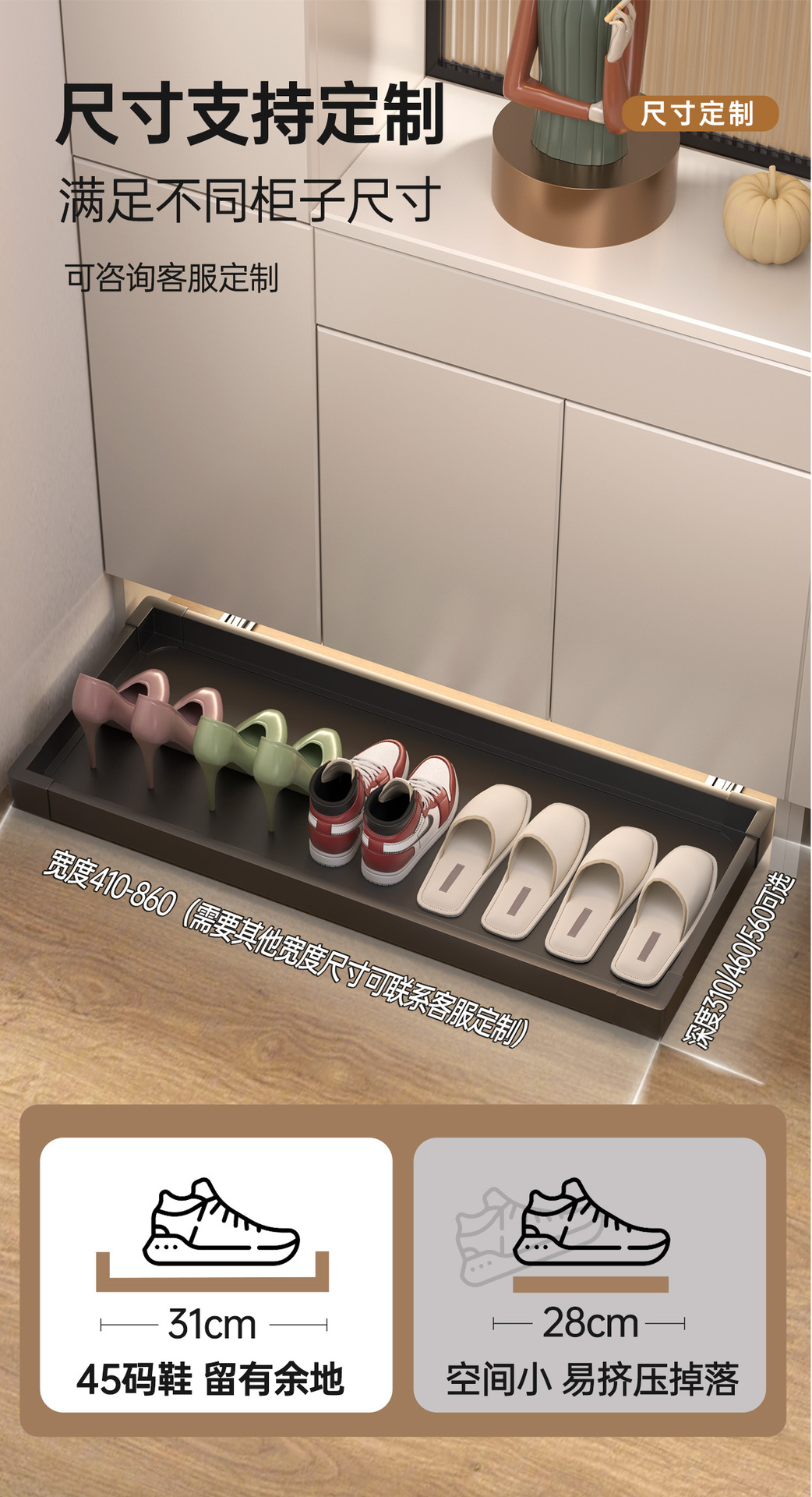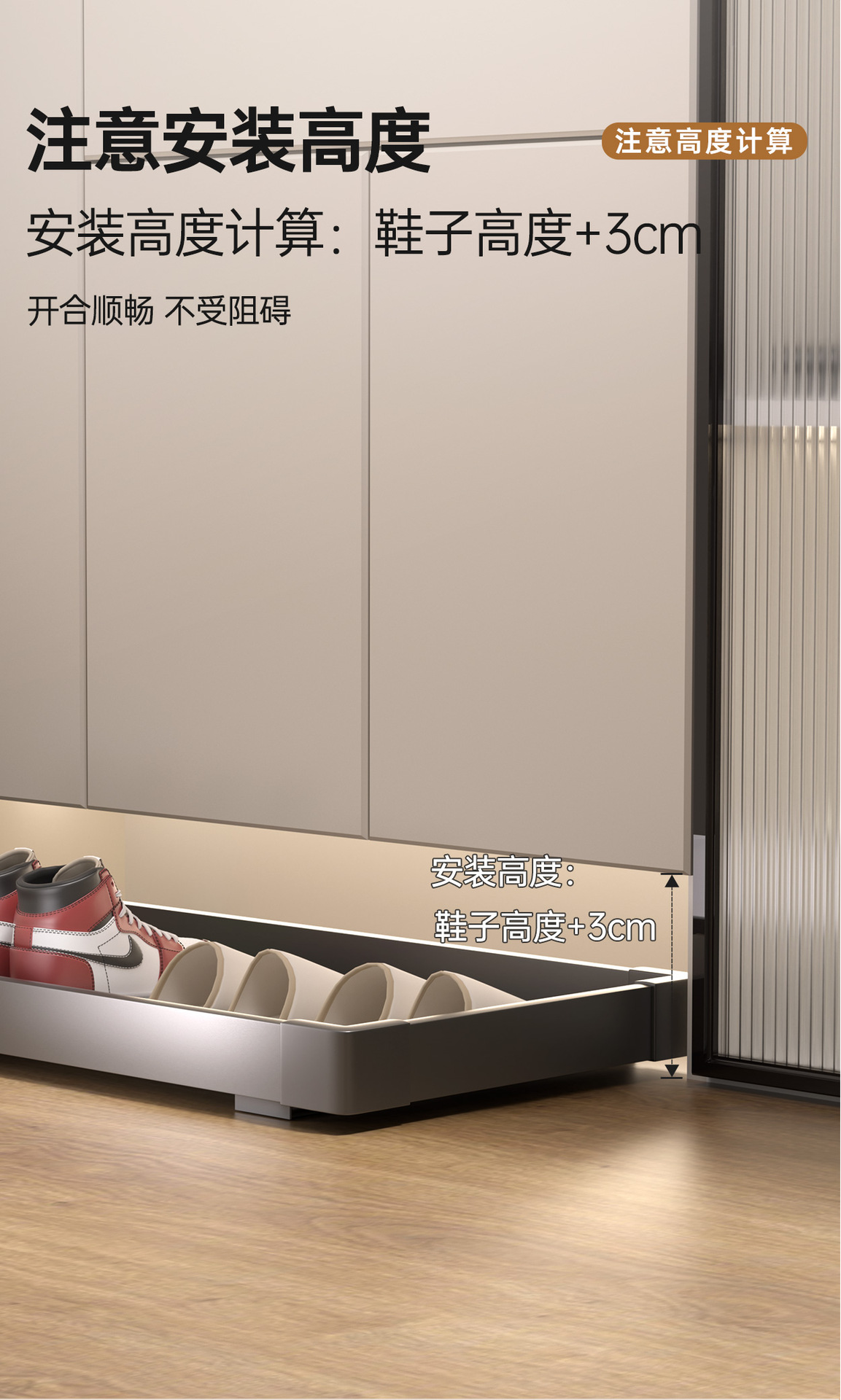 발로 밀어 올리는 서랍 신발장 바닥 트레이 가정용 신발 보관 리바운드 슬라이드 레일 입구 출입구 풀아웃 신발장