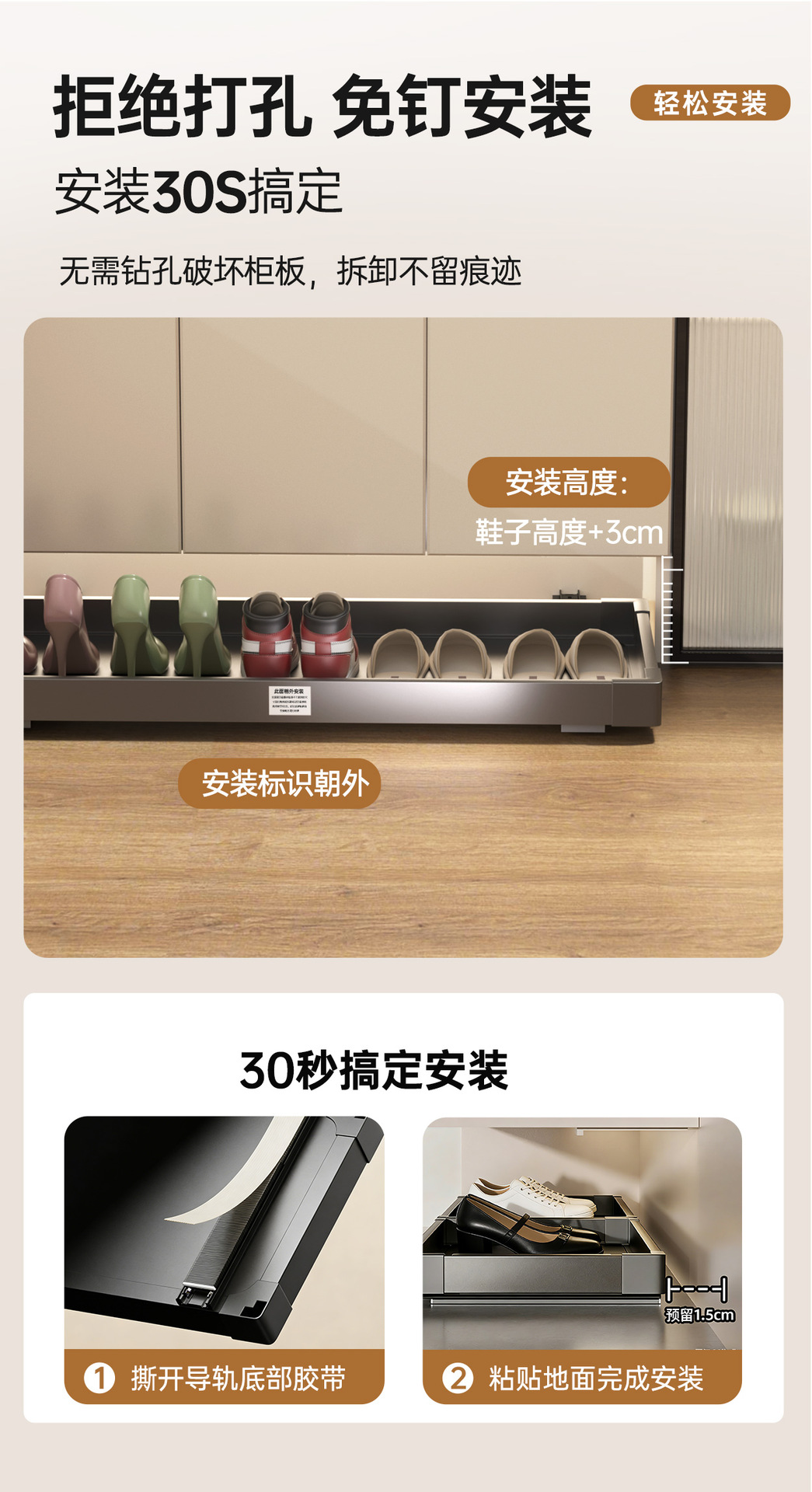 발로 밀어 올리는 서랍 신발장 바닥 트레이 가정용 신발 보관 리바운드 슬라이드 레일 입구 출입구 풀아웃 신발장스토어 가기