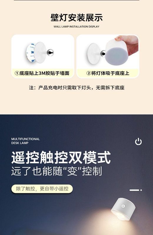 다기능 야간 조명 기숙사 충전식 침대 매달려 분위기 조명 침실 자기 테이블 램프 침실 수면 조명스토어 가기