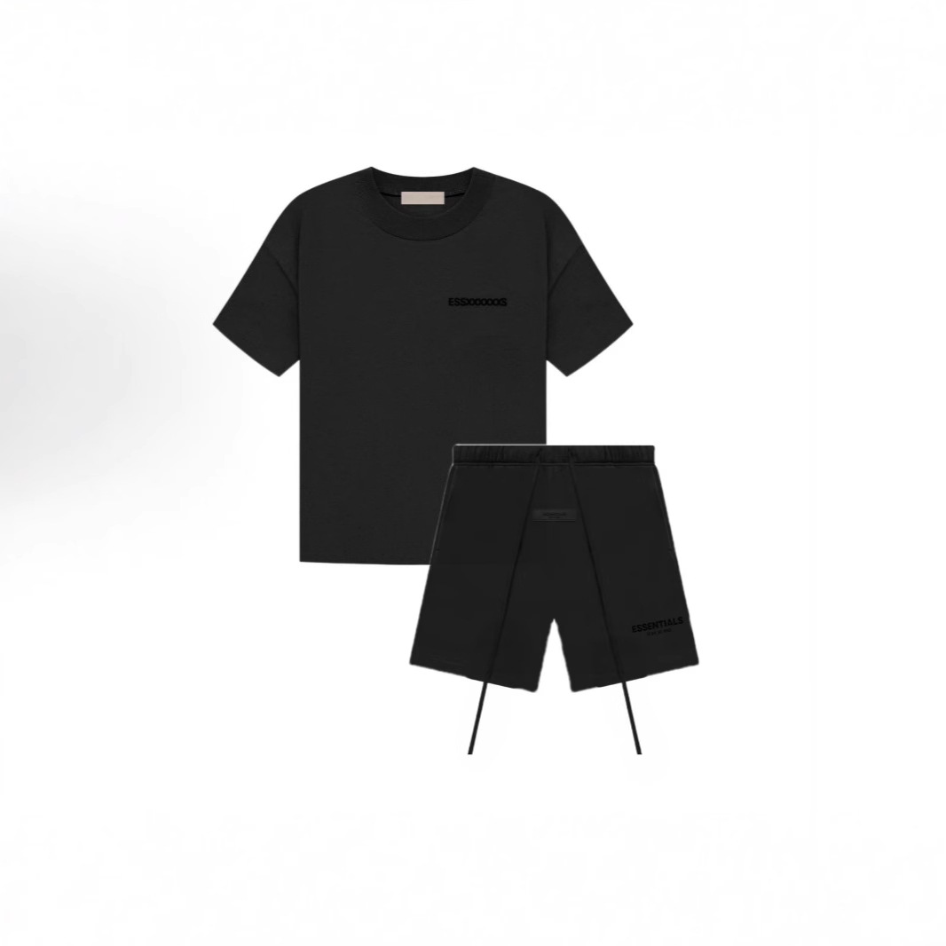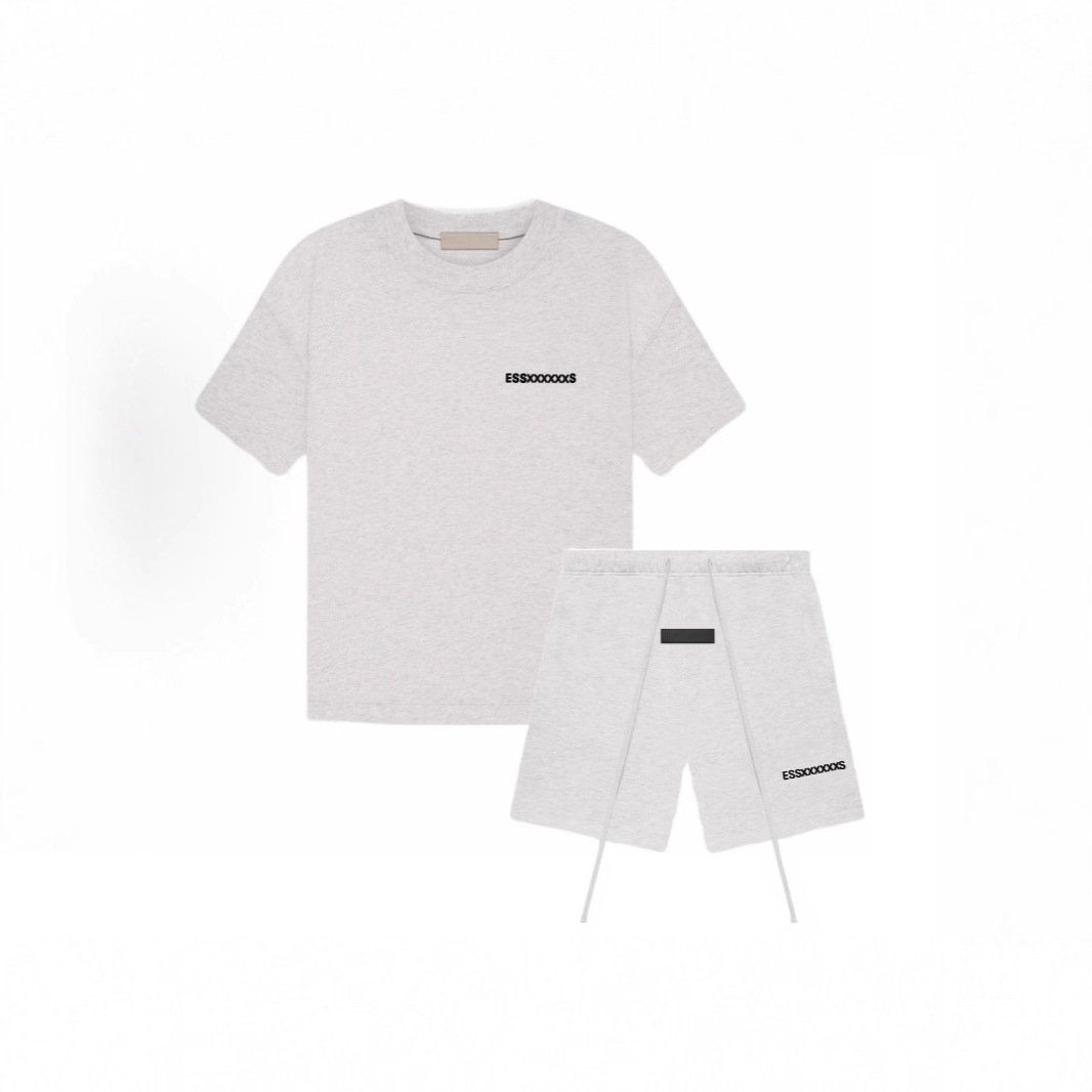 Fog Essentials 트렌디 브랜드 정품 미국판 대형 사이즈 크로스보더 SS22 플록 프린팅 반팔 티셔츠 반바지