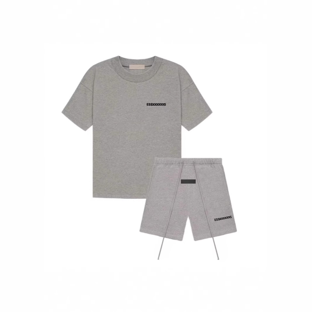 Fog Essentials 트렌디 브랜드 정품 미국판 대형 사이즈 크로스보더 SS22 플록 프린팅 반팔 티셔츠 반바지스토어 가기