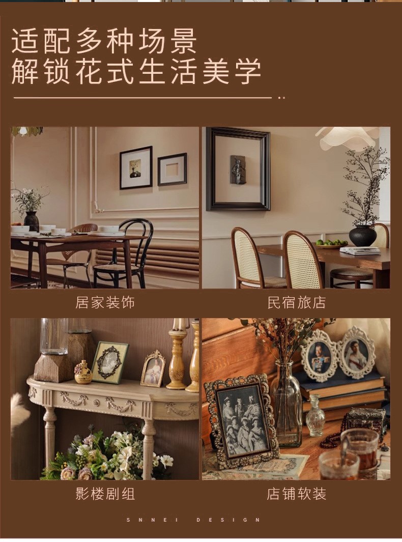 레트로 유럽 스타일의 궁전 황금 양각 수지 와인 레드 사진 프레임 홈 숙박 벽 장식 문학 및 예술 빛 럭셔리 사진 프레임스토어 가기