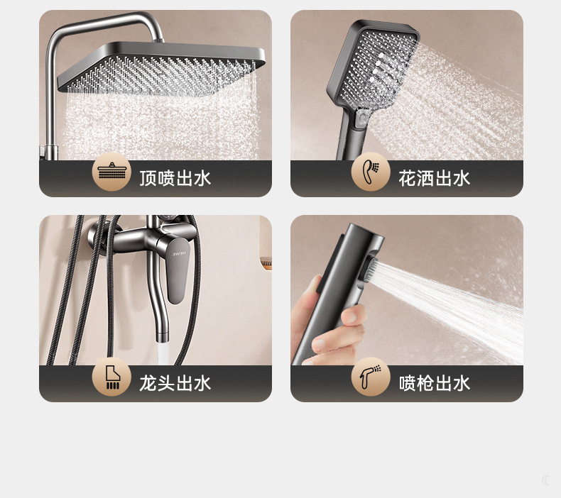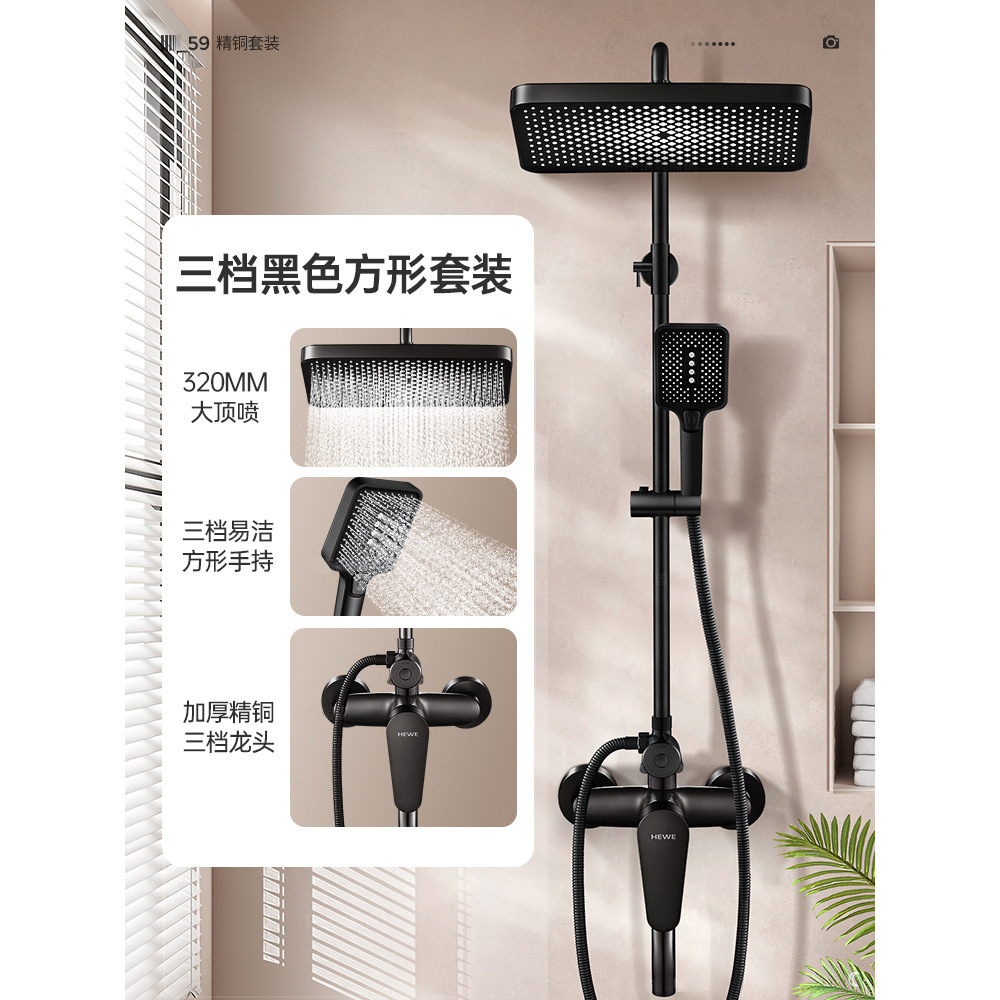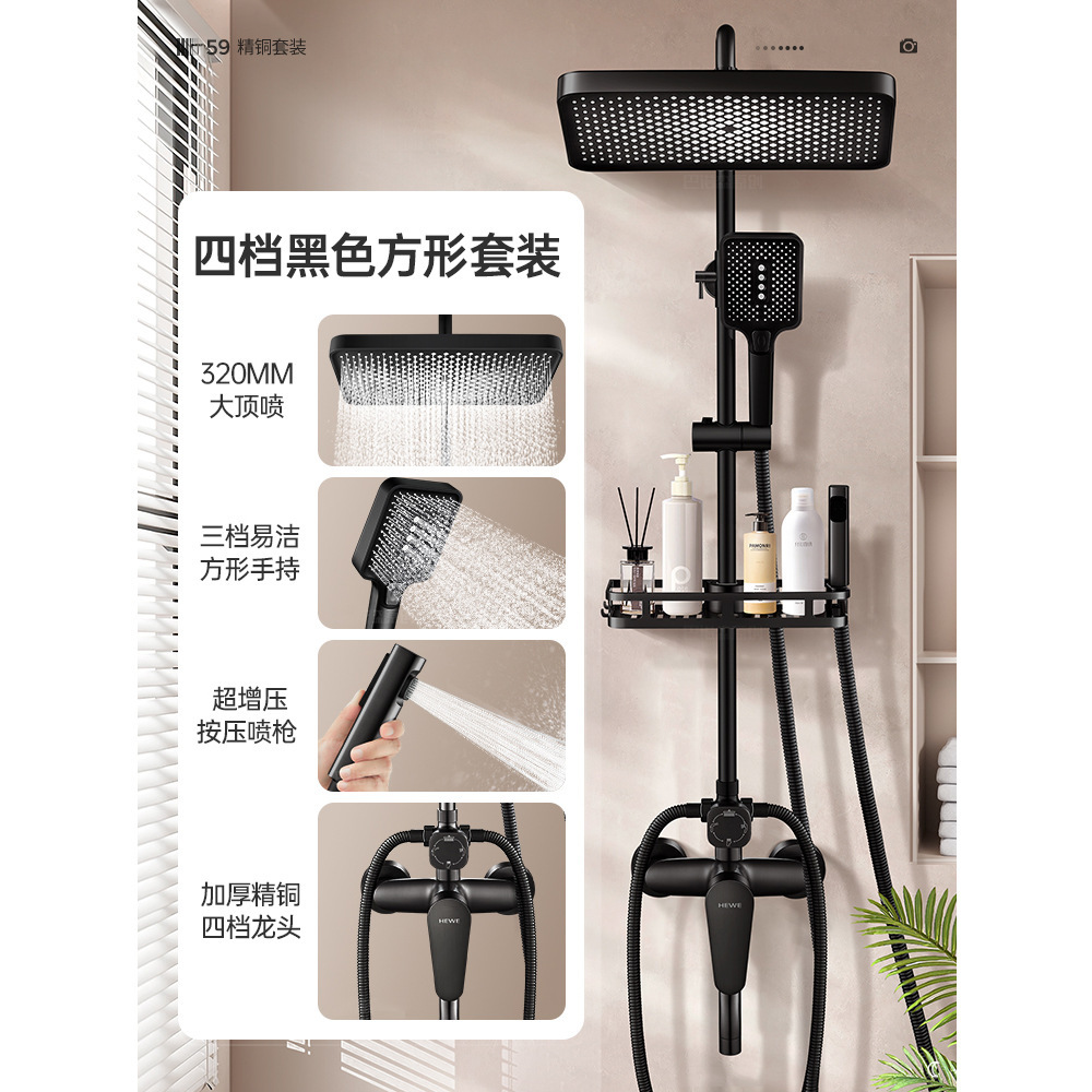 • 우아한 블랙(4개 배수구) 사각 대용량 샤워 세트