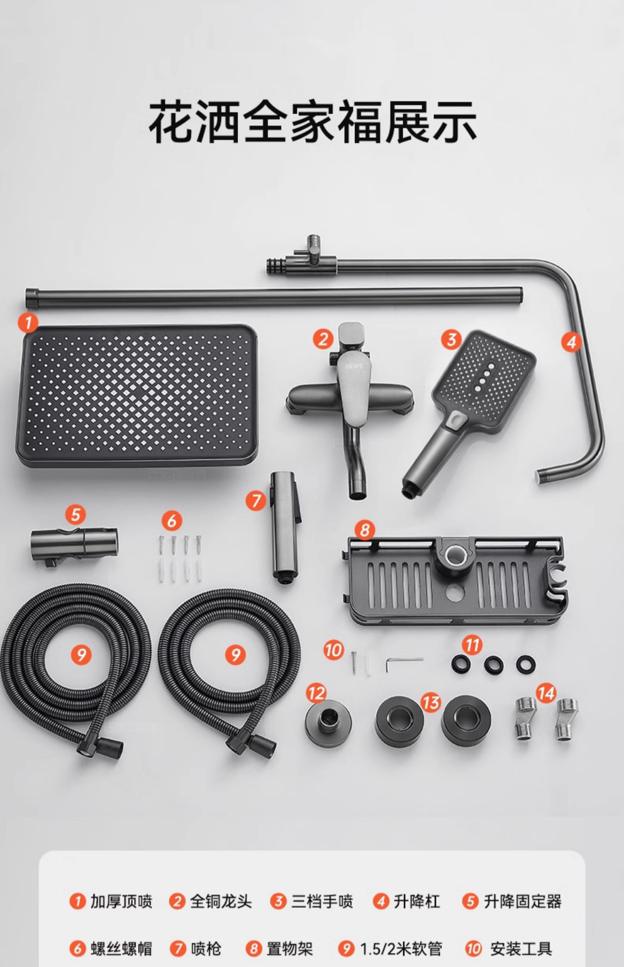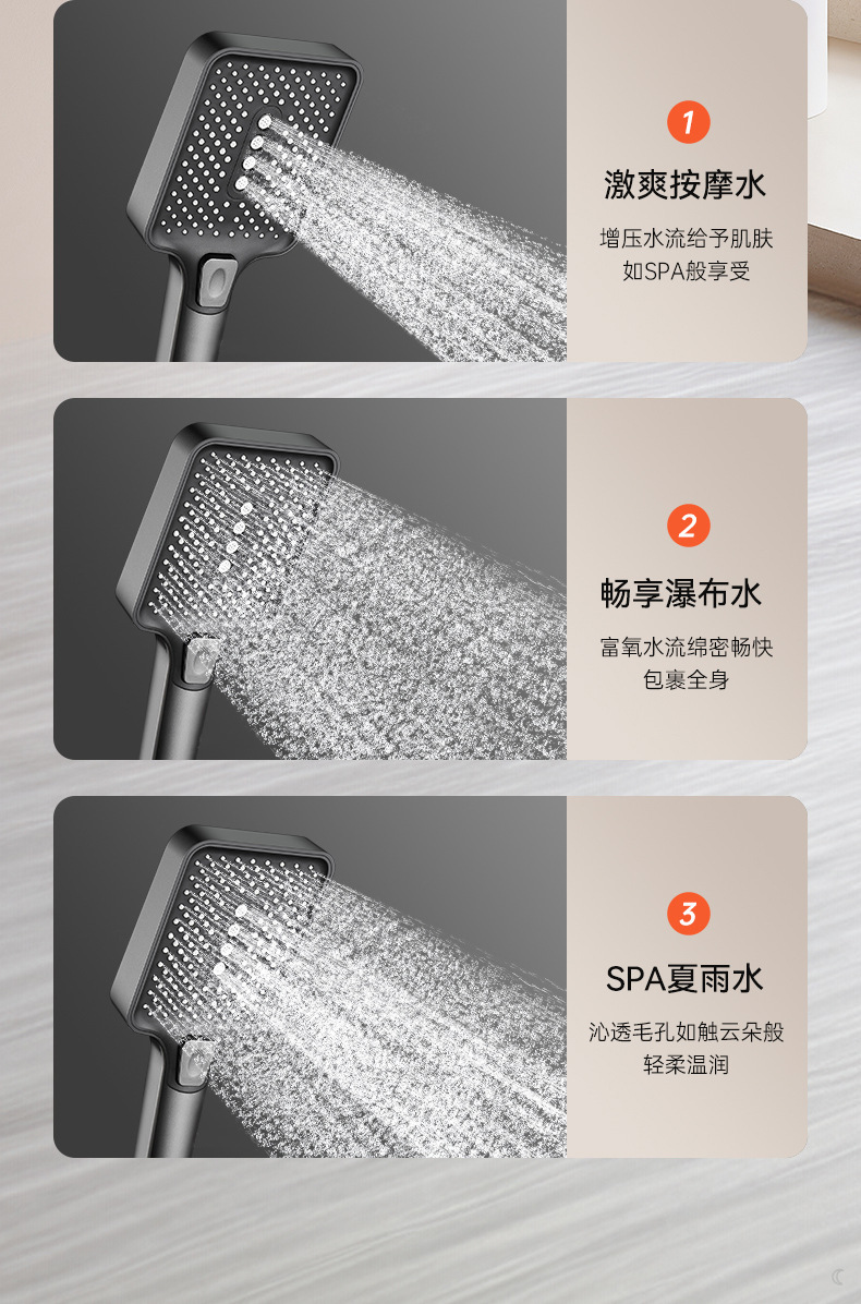 • 우아한 블랙(3구) 원형 대용량 샤워 세트