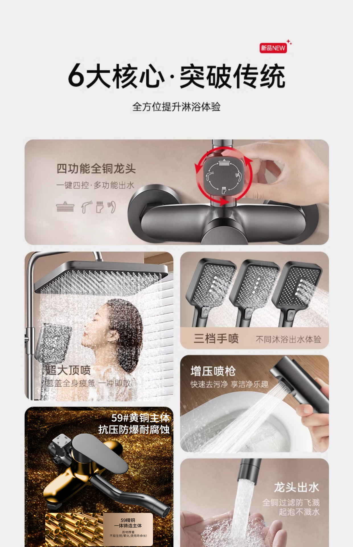 욕실 샤워 헤드 세트 가정용 욕실 샤워 샤워 헤드 전체 구리 가압 샤워