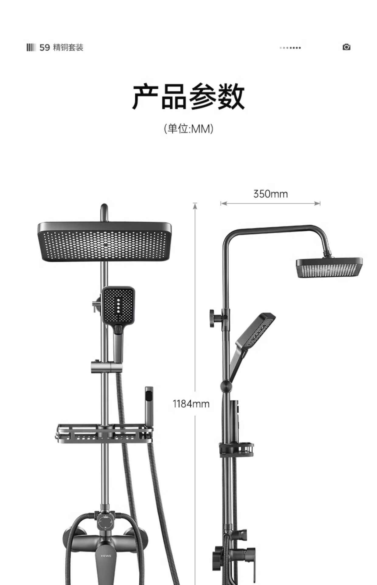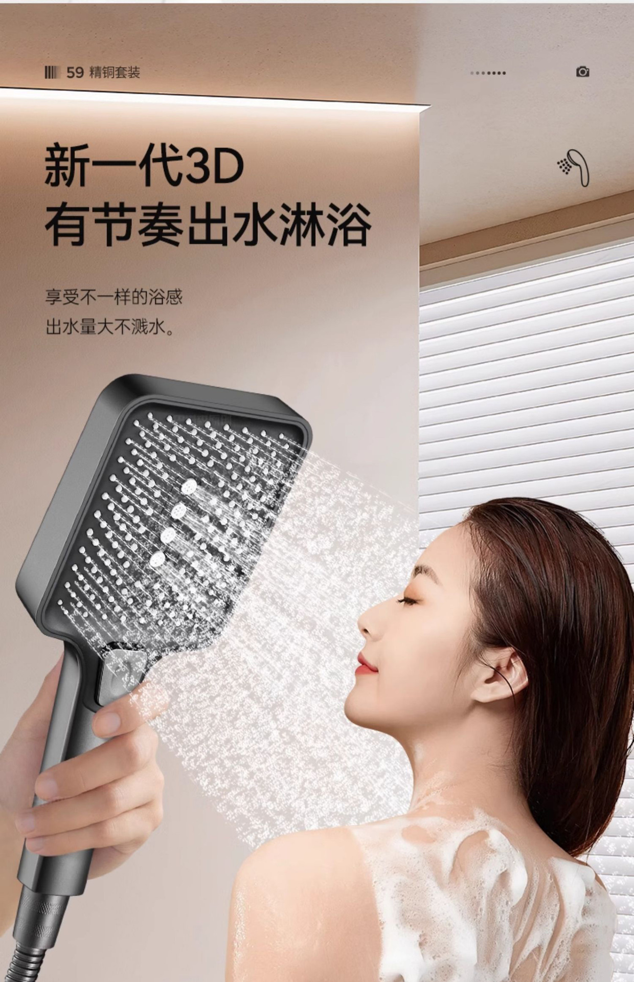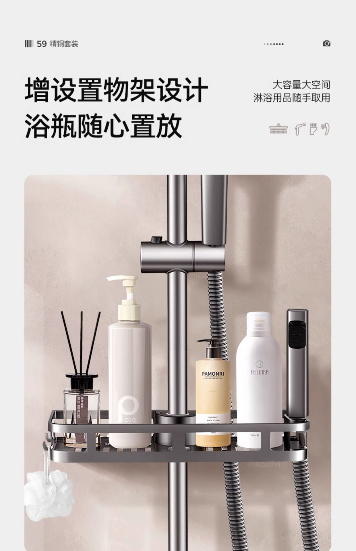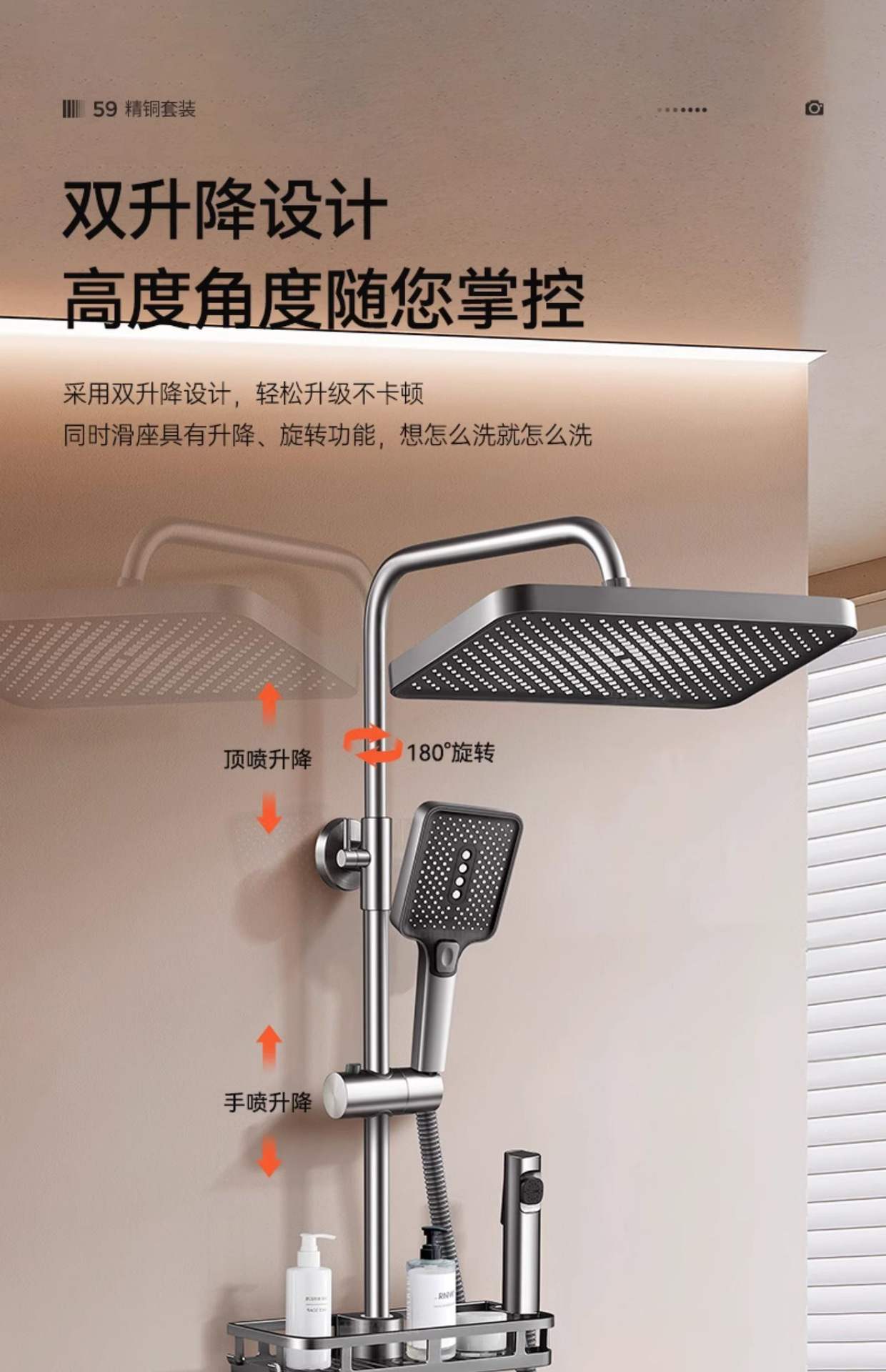 • 우아한 블랙(3구) 사각 대용량 샤워 세트