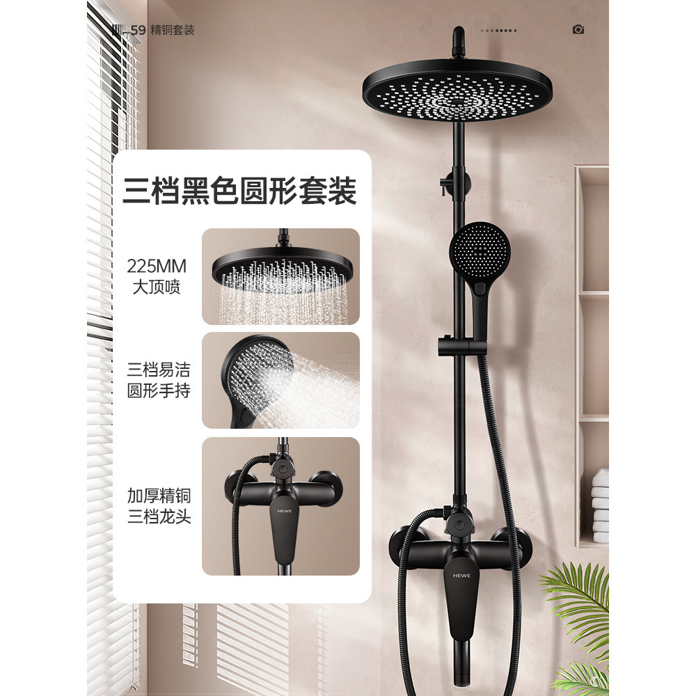 • 우아한 블랙(4개 배수구) 원형 대용량 샤워 세트