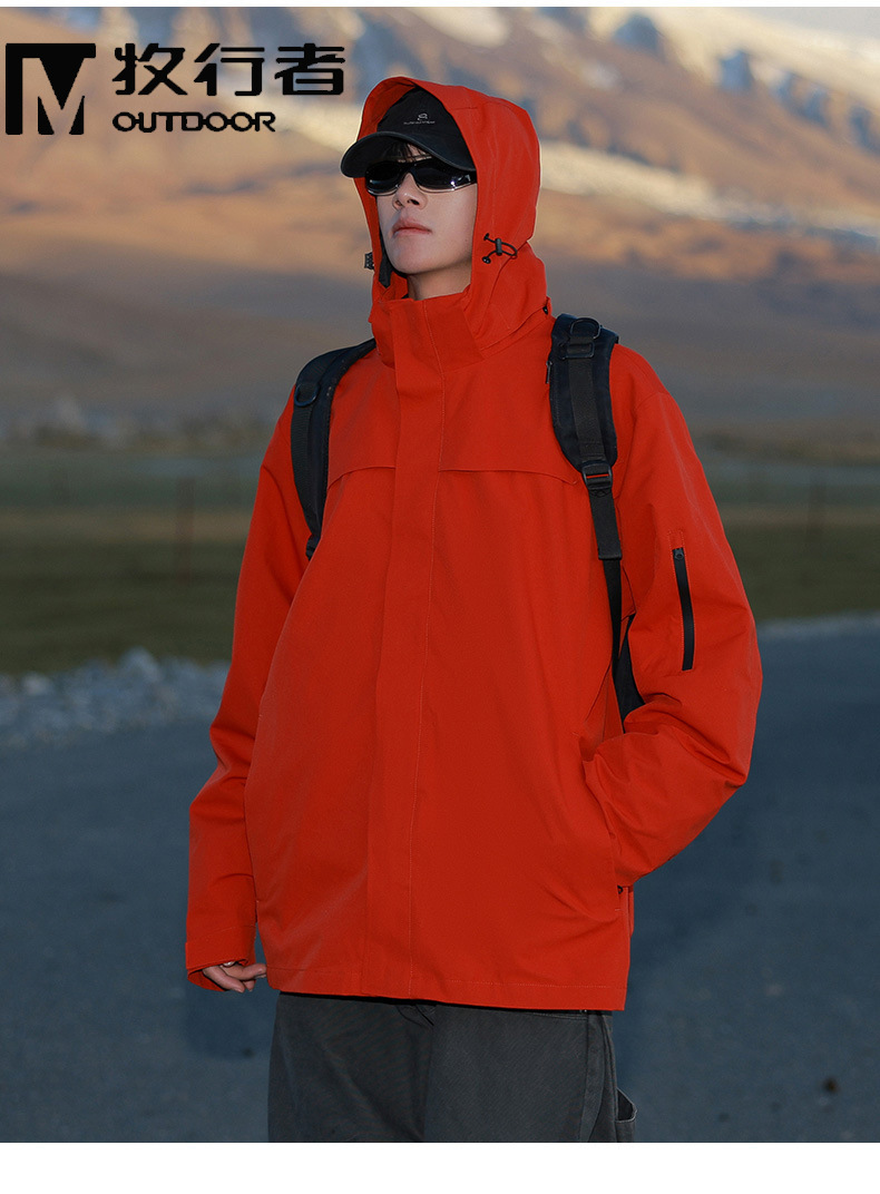 중국 레드 소프트 쉘 재킷 남성 가을, 겨울 유행 야외 등산 의류 여성 3-in-one 재킷 방풍 및 방수 재킷스토어 가기