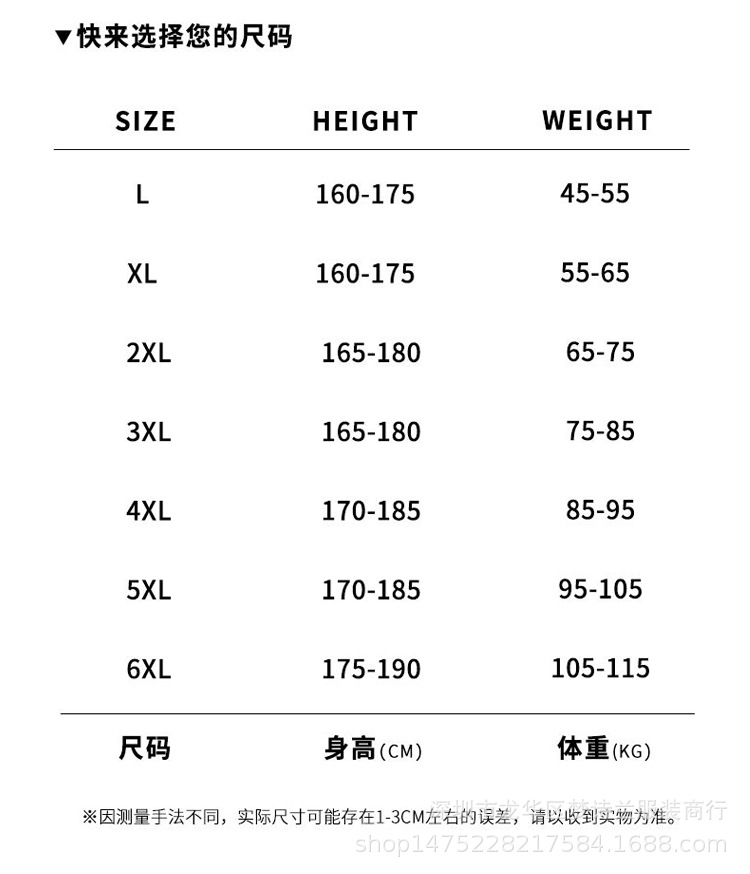 男士牛奶丝尺码说明