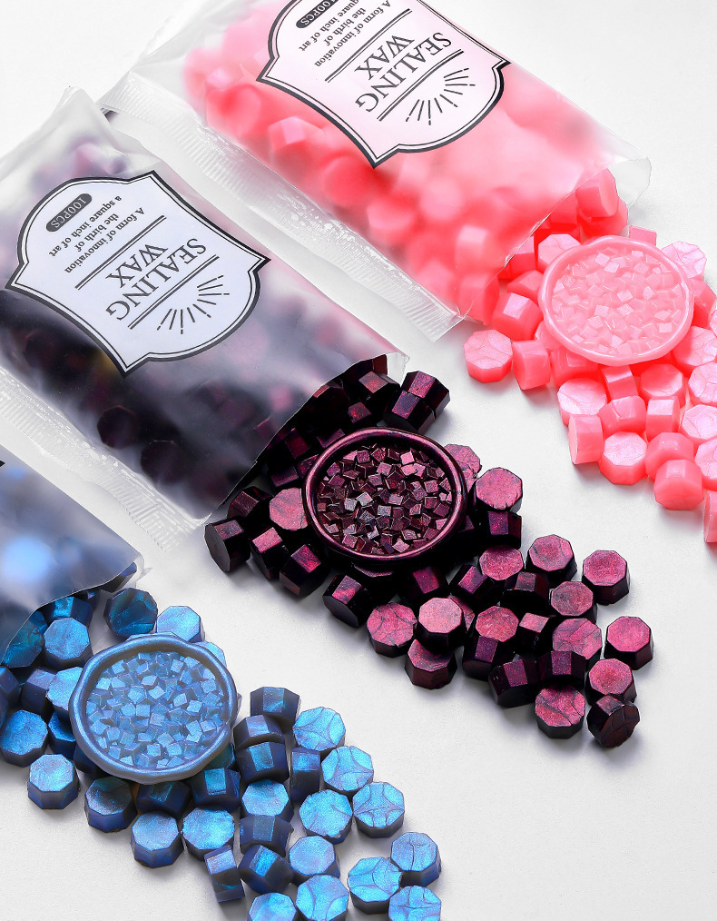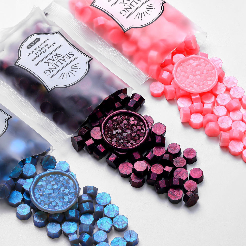 • 팔각형 오로라 왁스 입자, 4가지 색상 혼합 (작은 봉지에 100개입)