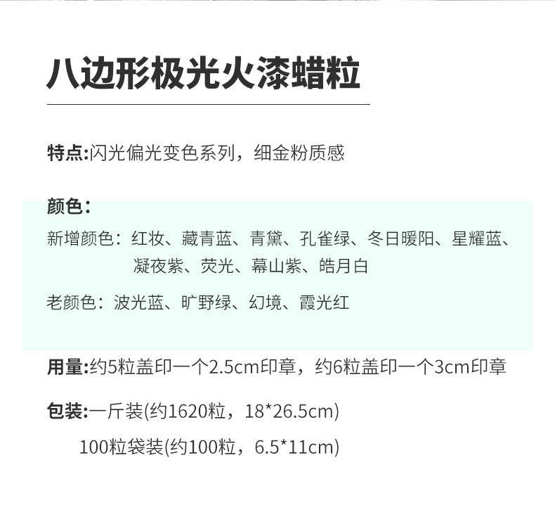 오로라 팔각형 새로운 색상 파이어 페인트 왁스 입자 반짝이 편광 된 다채로운 파이어 페인트 씰 씰링 왁스 제조 업체 도매스토어 가기