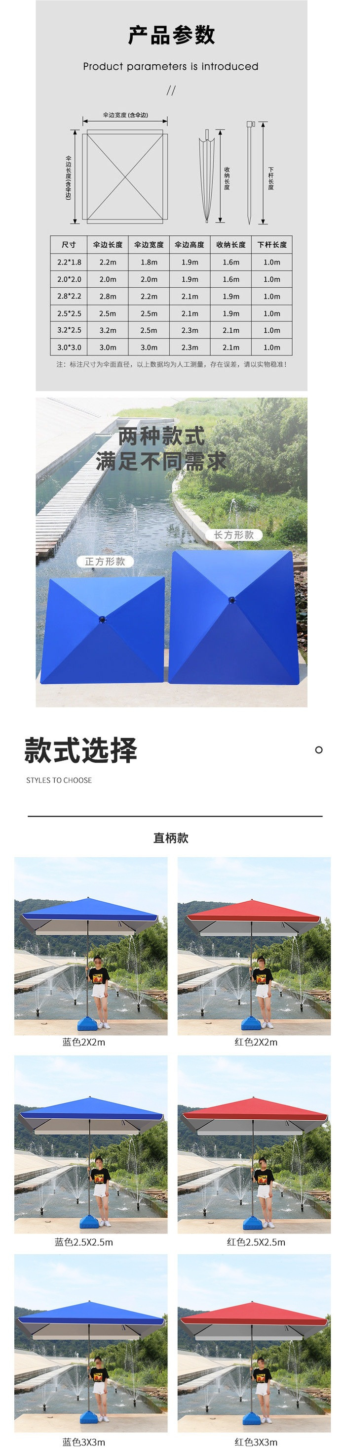 파라솔, 대형 야외 매점, 사각형 태양 우산, 대형 안뜰 우산, 상업용 우산, 대형 우산, 자외선 차단 우산