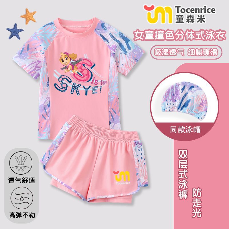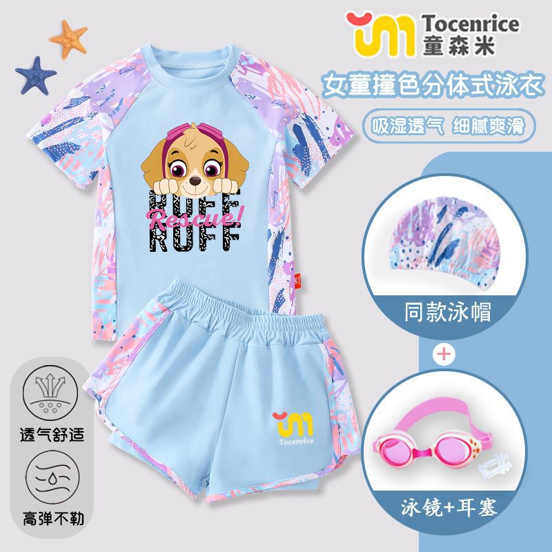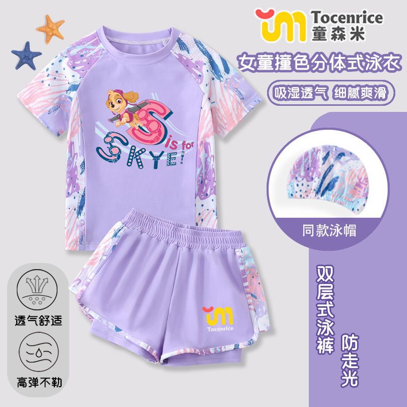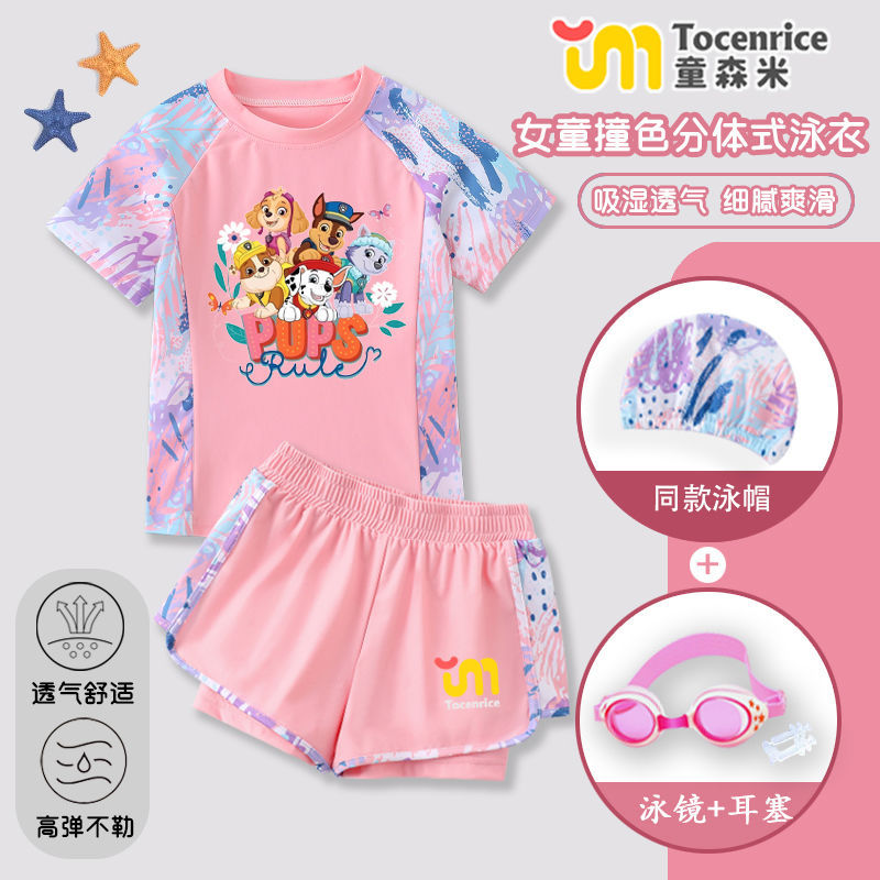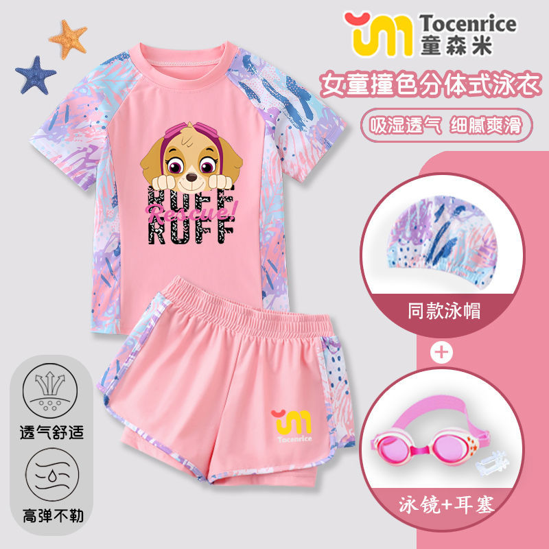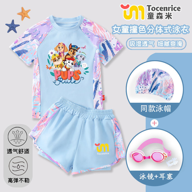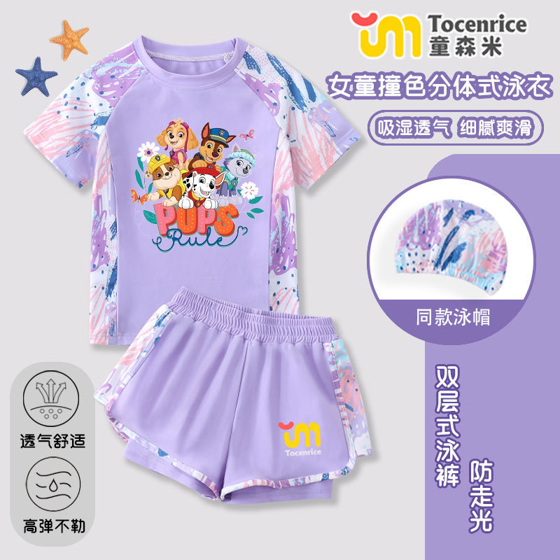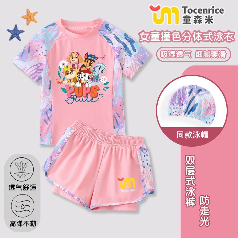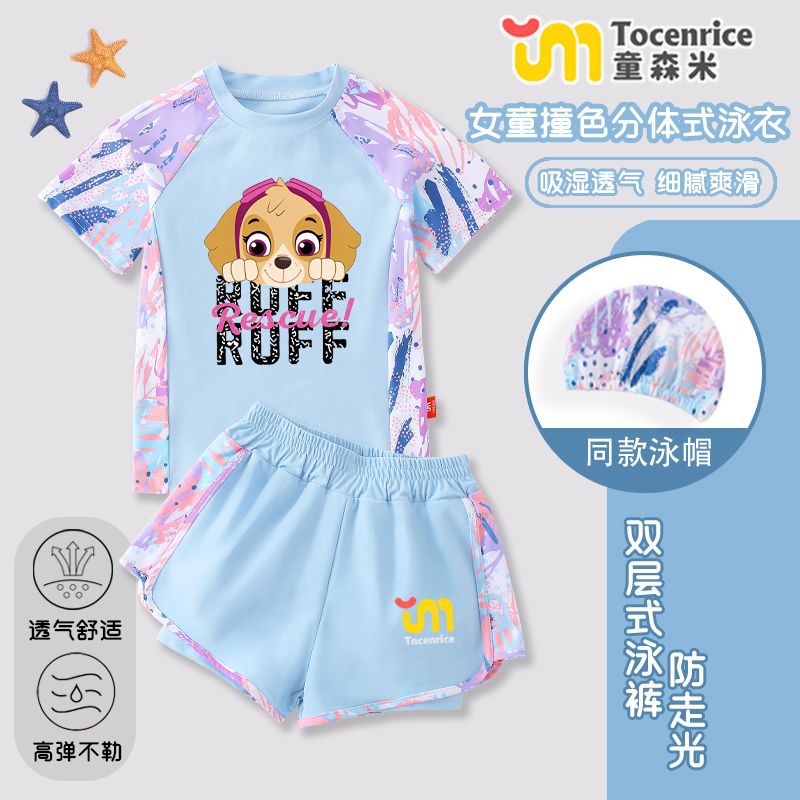 국경 간 새로운 Paw Patrol 소녀 수영복 스플릿 소녀 수영복 세트 빠른 건조 태양 보호 훈련 해변스토어 가기