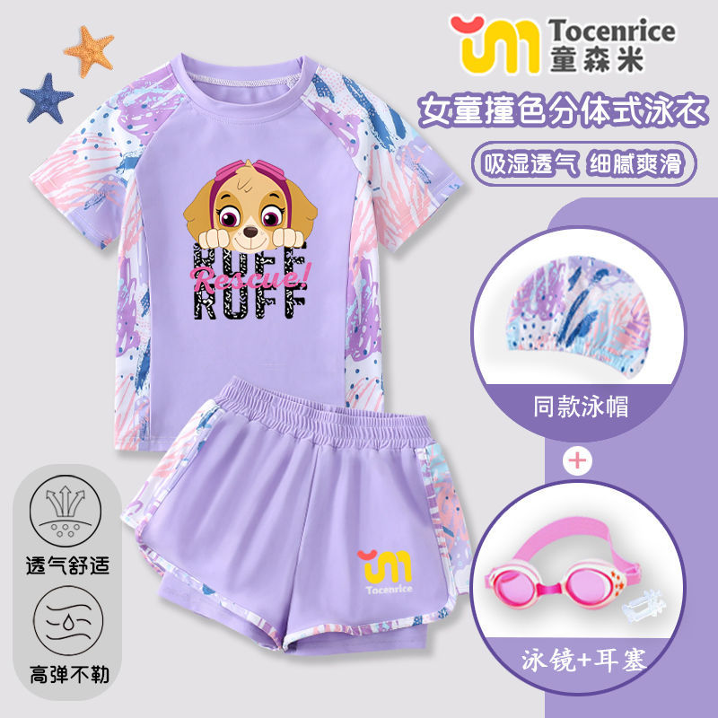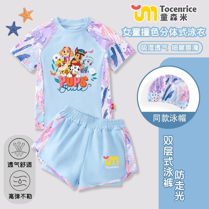 국경 간 새로운 Paw Patrol 소녀 수영복 스플릿 소녀 수영복 세트 빠른 건조 태양 보호 훈련 해변