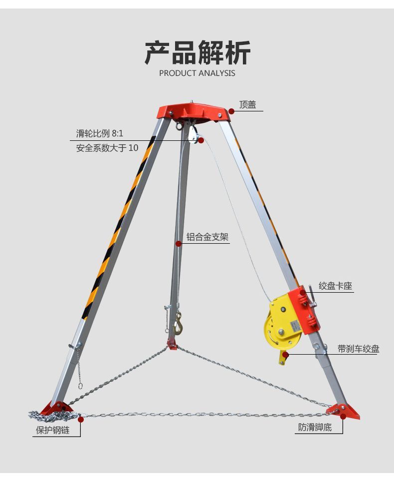 화재 구조 삼각대 알루미늄 합금 우물 입구 브래킷 한정 공간 개폐식 비상 핸드 크랭크 윈치