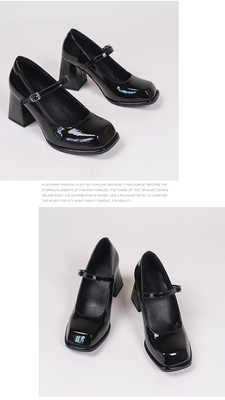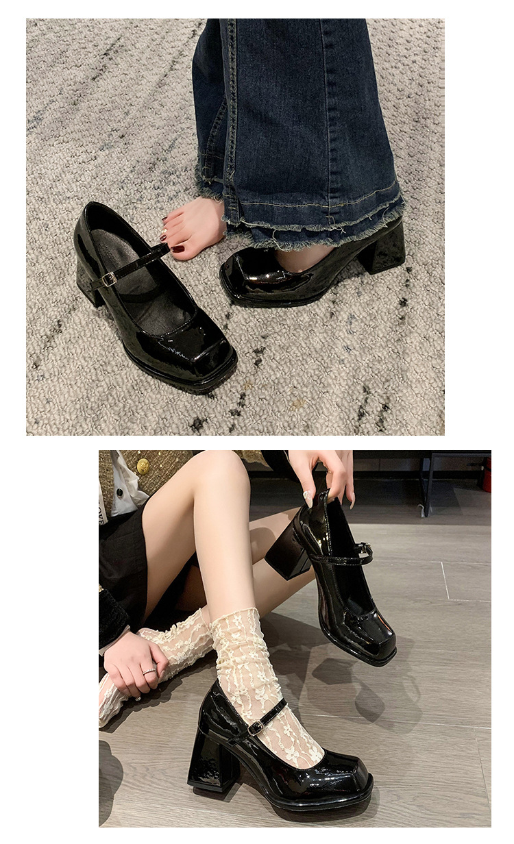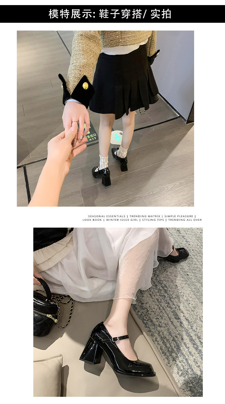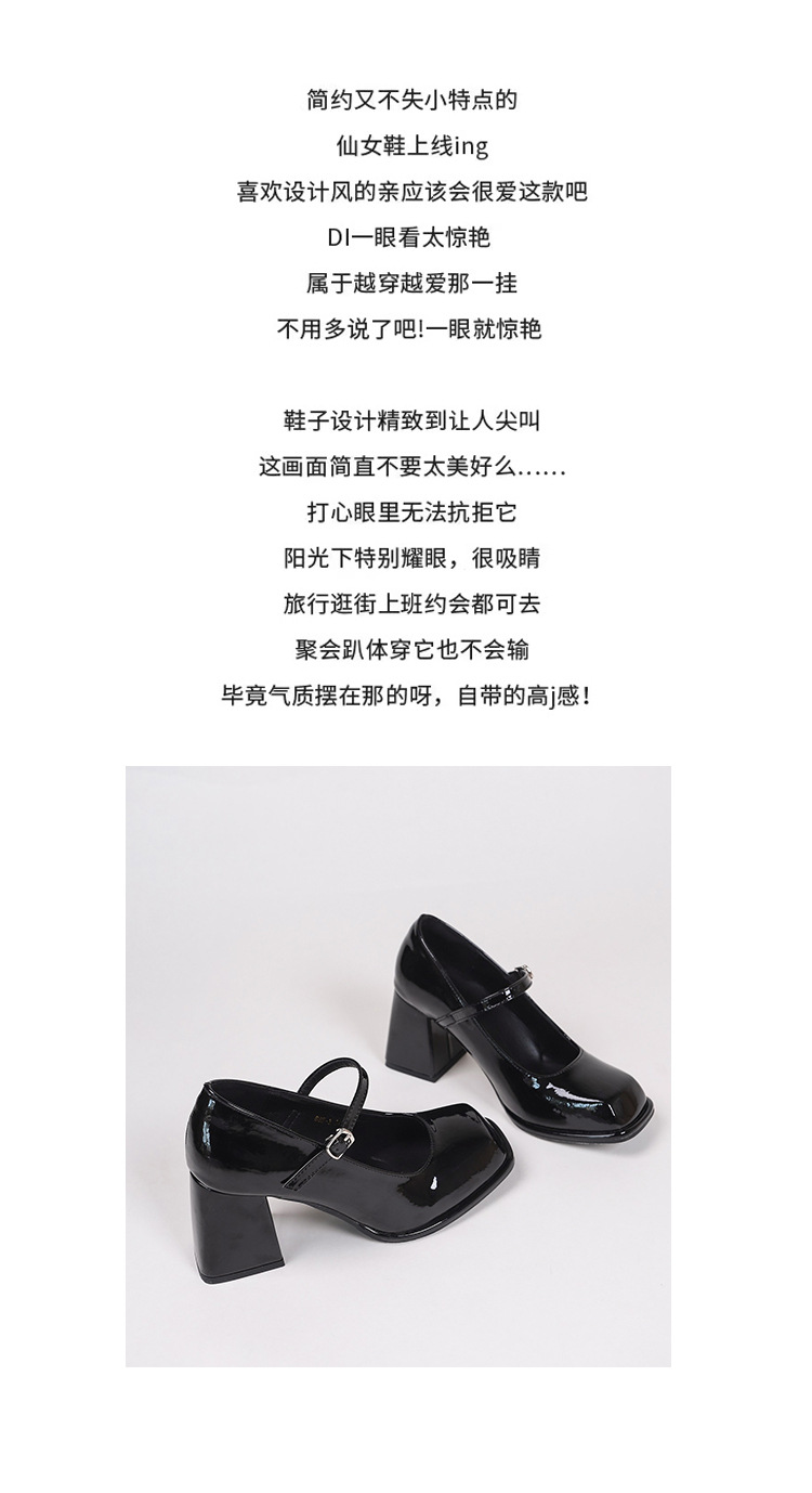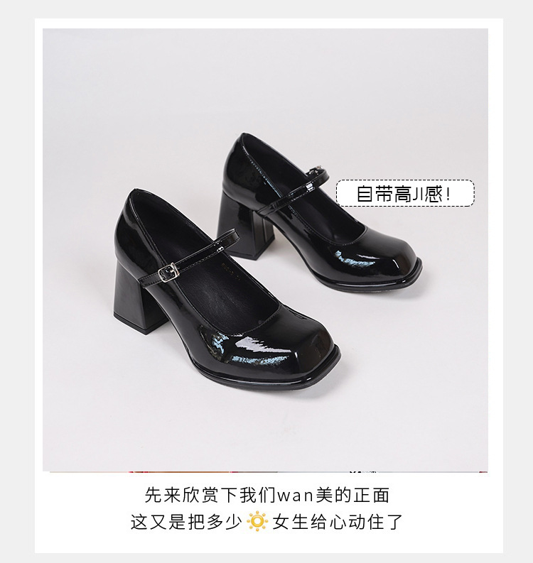 여성을위한 프랑스 복고풍 메리 제인 신발 2025 새로운 봄 하이힐 작은 가죽 신발 기질 스퀘어 발가락 두꺼운 굽 신발스토어 가기