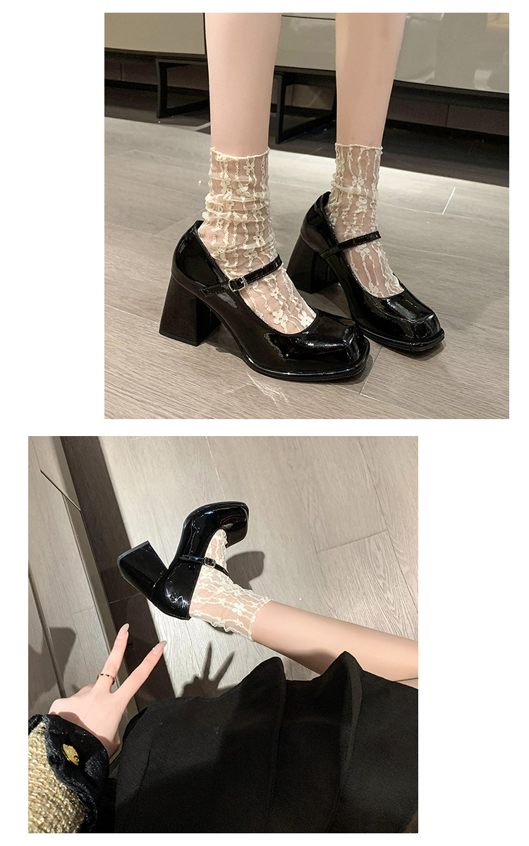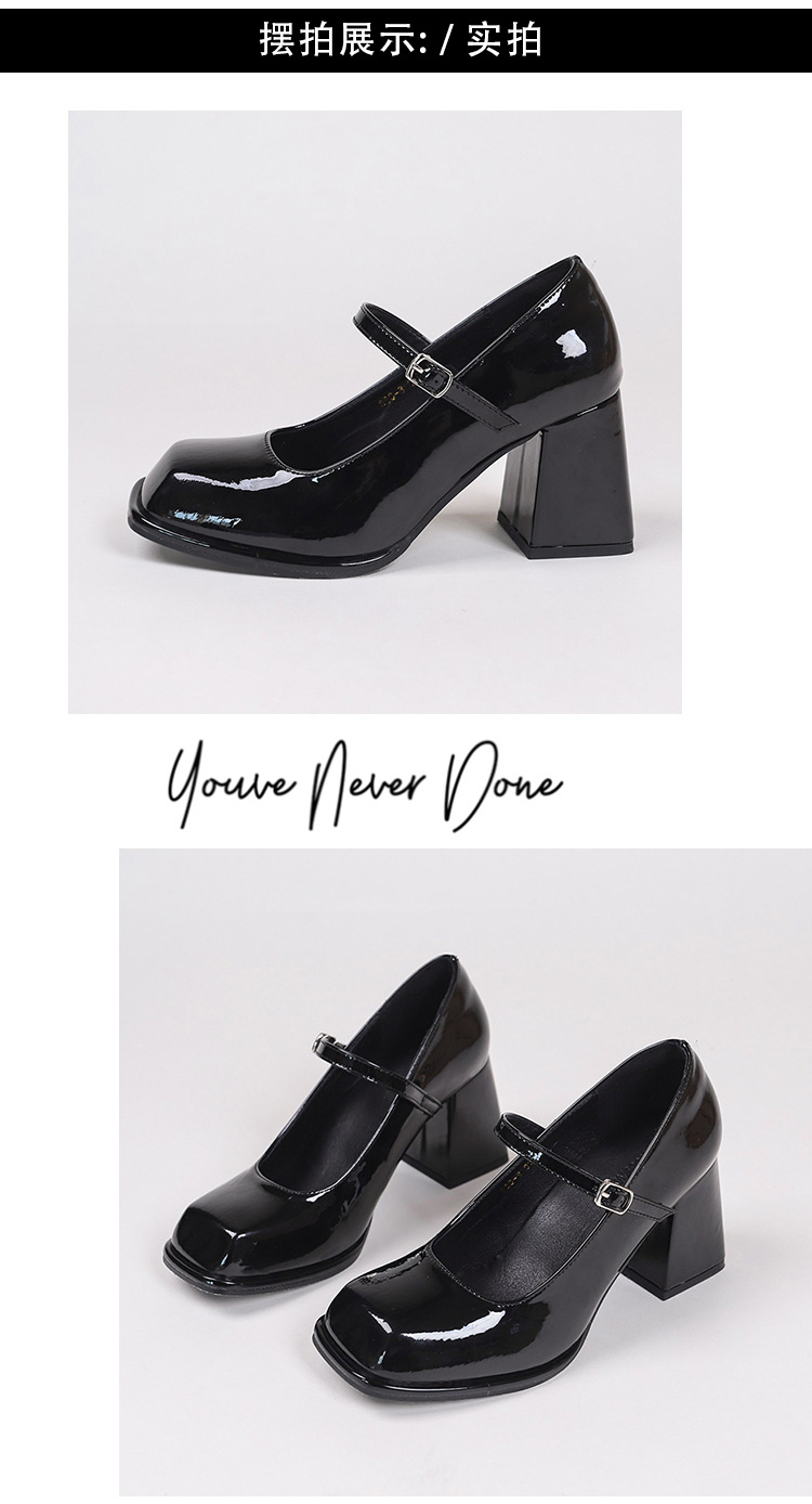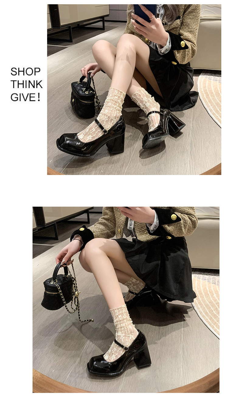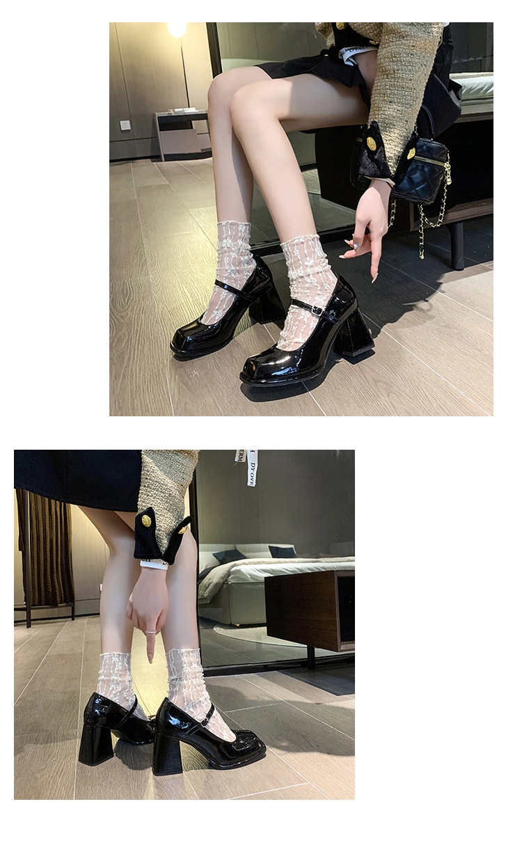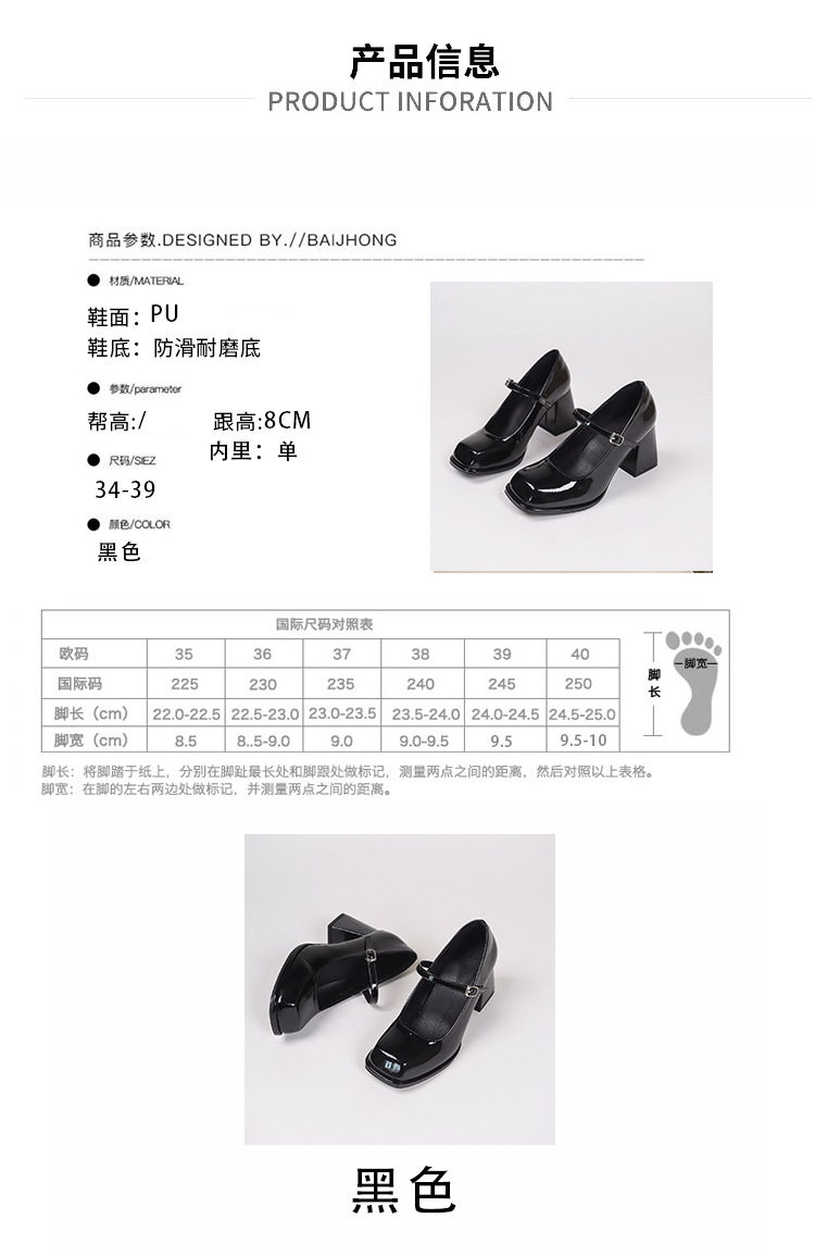 여성을위한 프랑스 복고풍 메리 제인 신발 2025 새로운 봄 하이힐 작은 가죽 신발 기질 스퀘어 발가락 두꺼운 굽 신발스토어 가기
