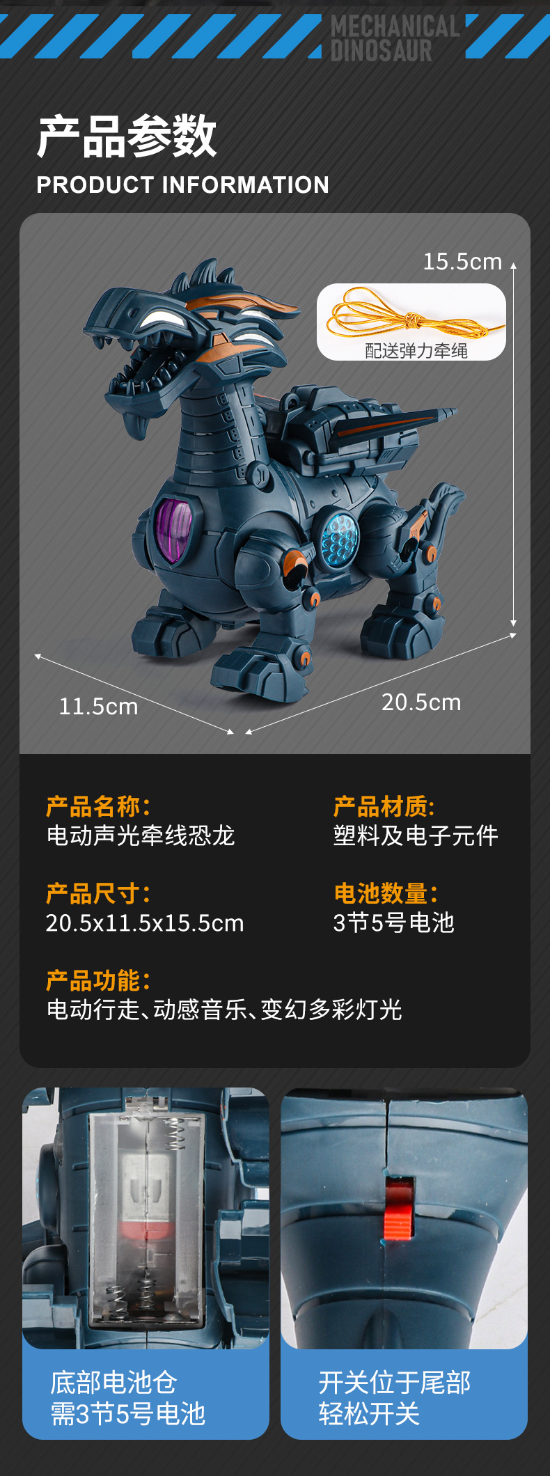 인터넷 연예인 전기 가죽끈 공룡 음악 조명 자동 걷기 소년 어린이 장난감 시뮬레이션 드래곤 시작