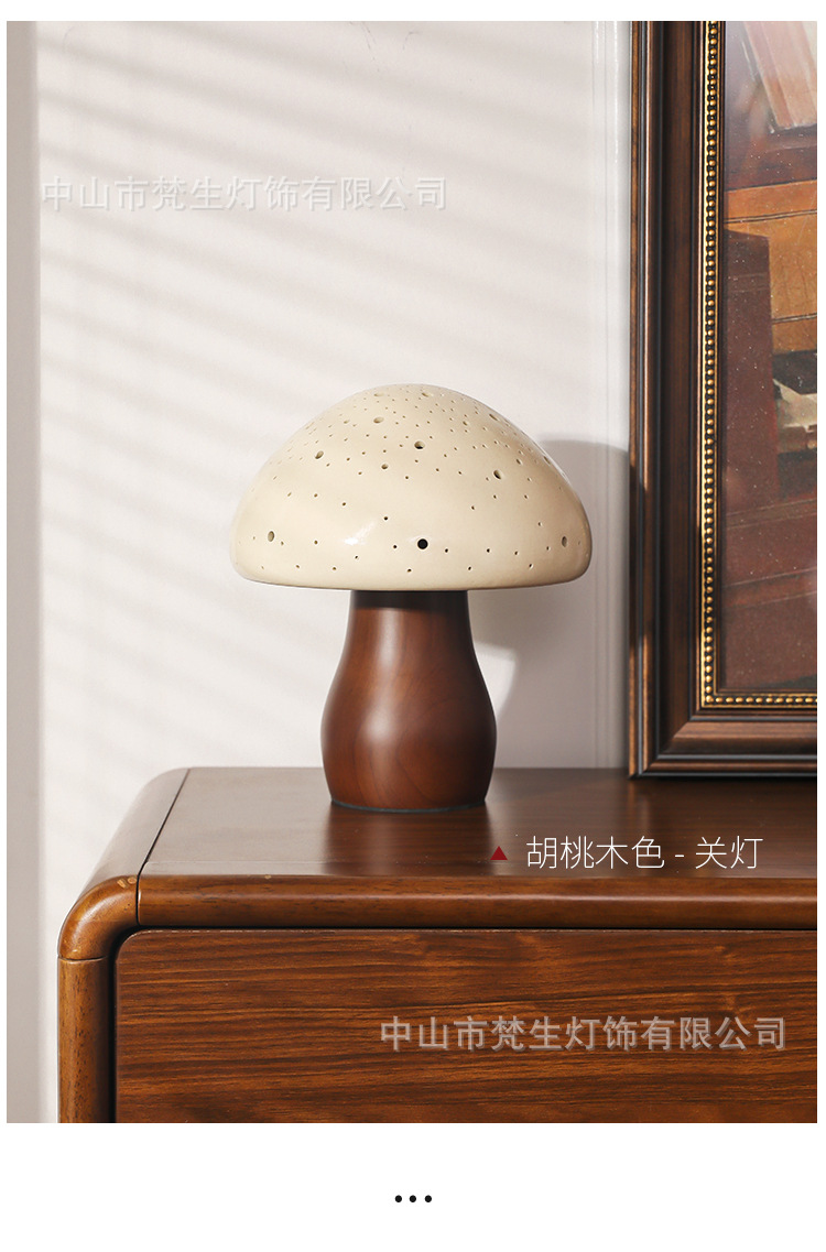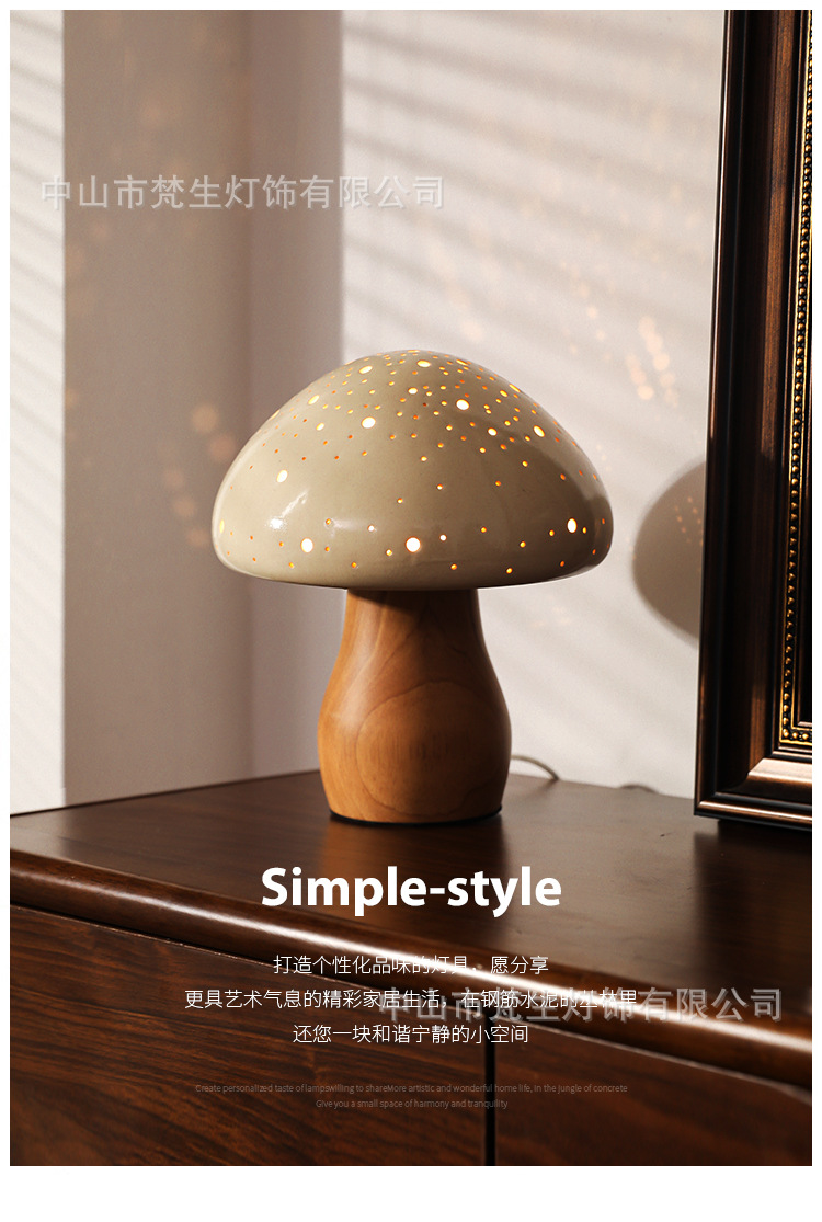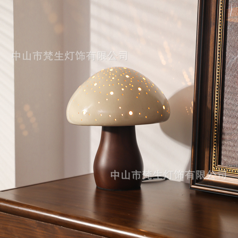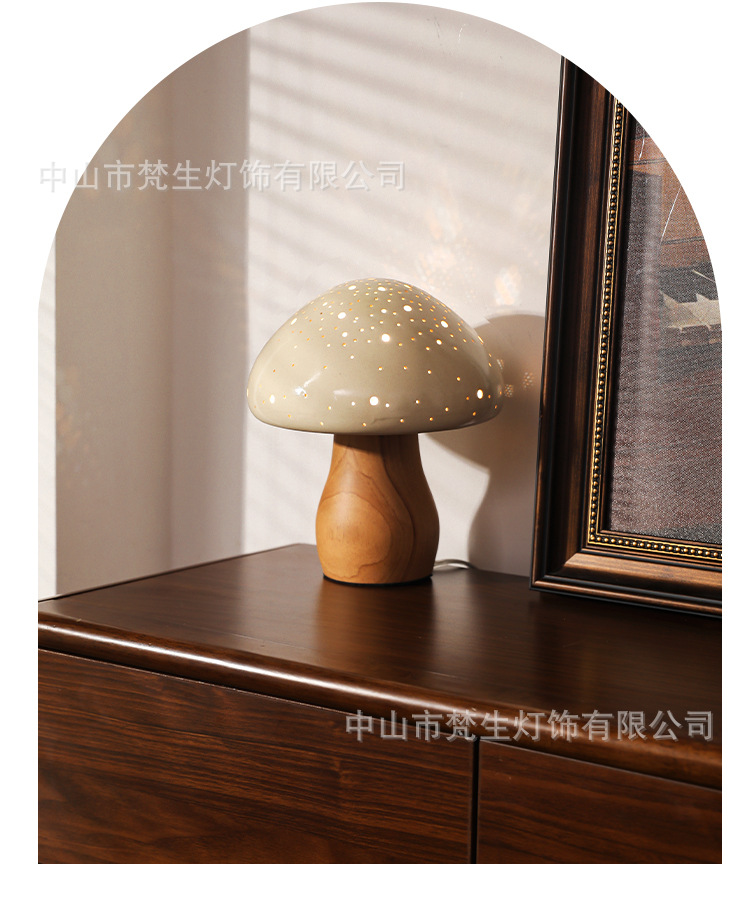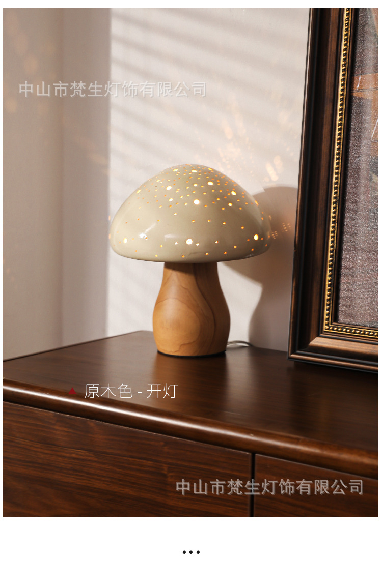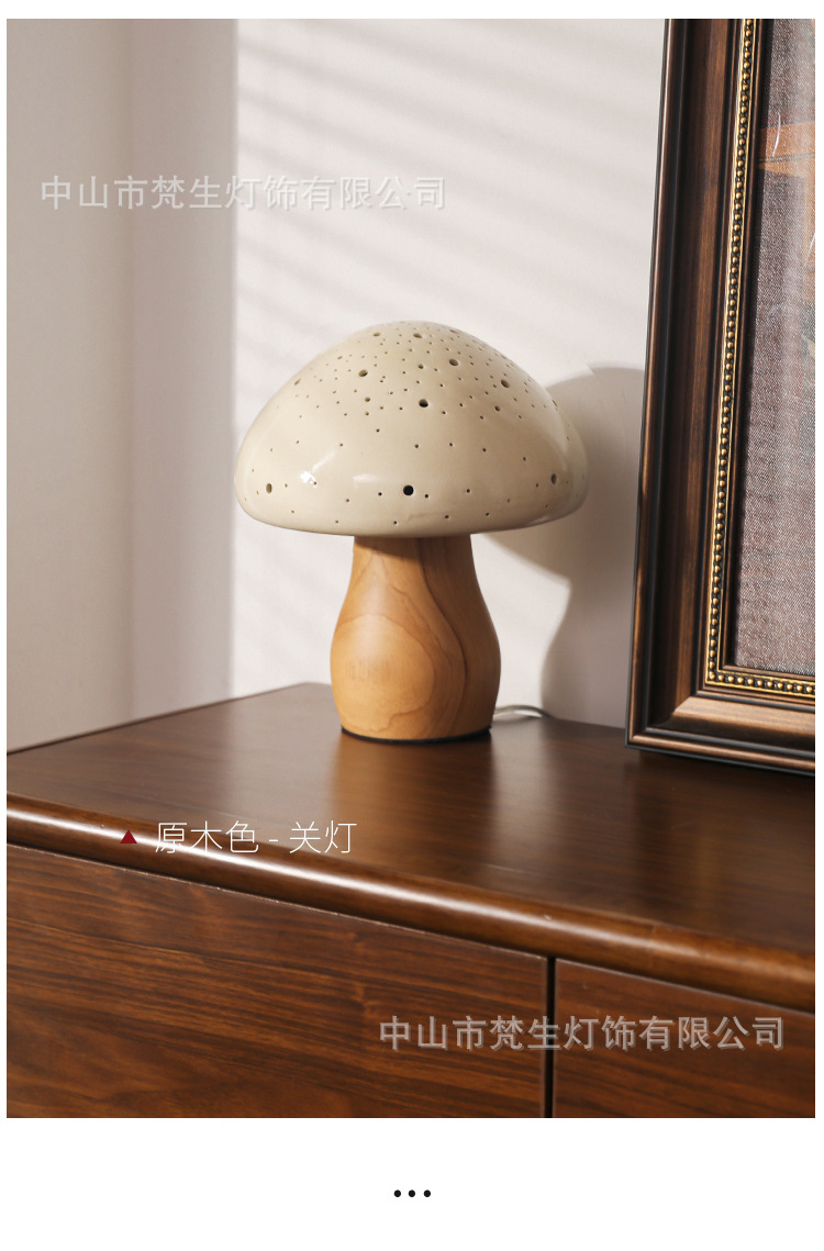 중세 스타일 테이블 램프 크리 에이 티브 버섯 침실 머리맡 분위기 램프 현대 간단한 단단한 나무 하이 엔드 장식 테이블 램프스토어 가기