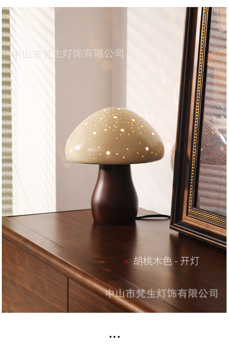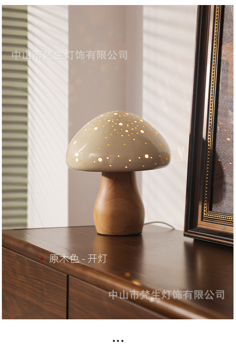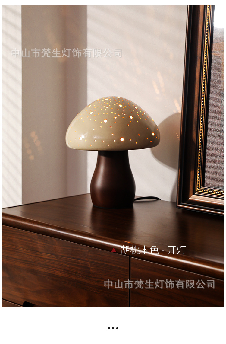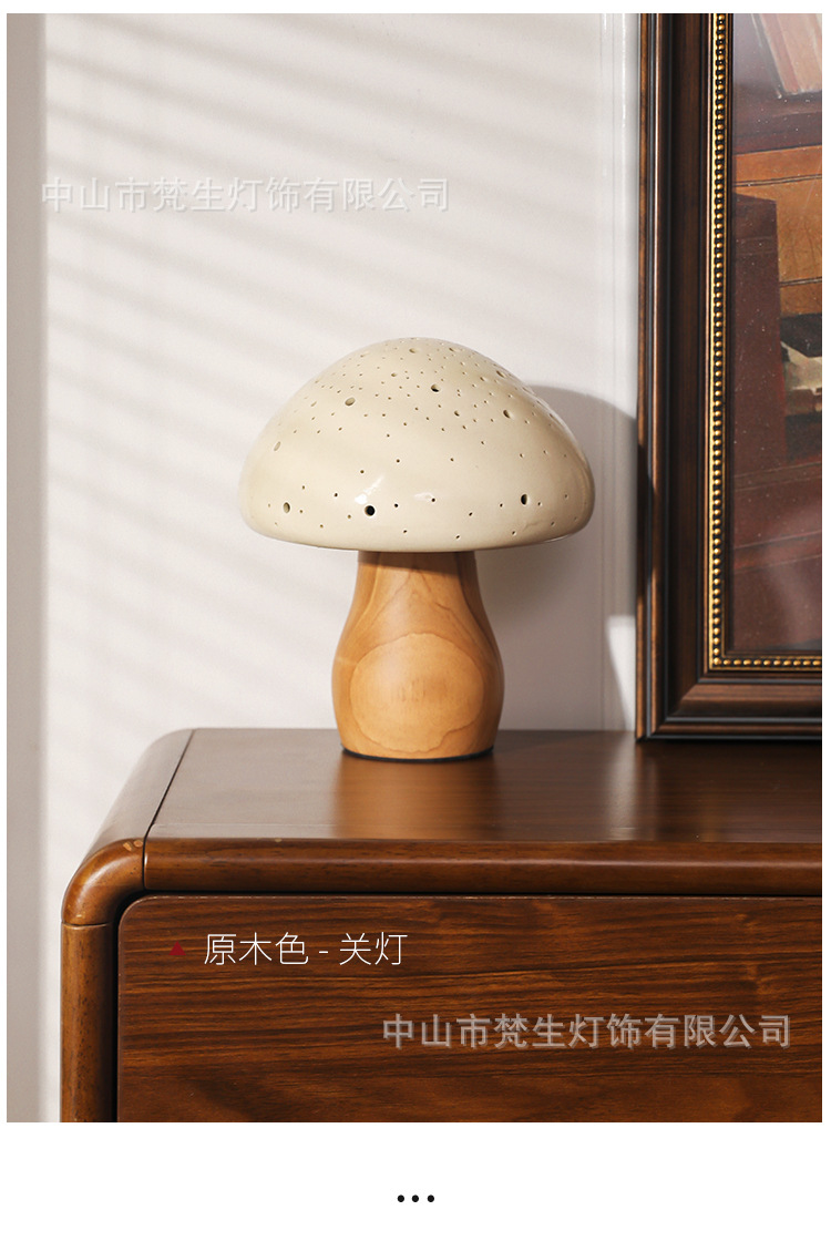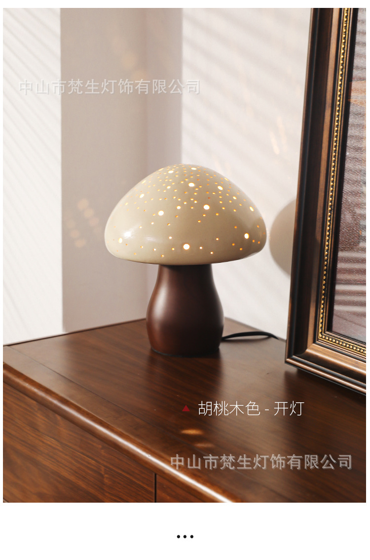 중세 스타일 테이블 램프 크리 에이 티브 버섯 침실 머리맡 분위기 램프 현대 간단한 단단한 나무 하이 엔드 장식 테이블 램프스토어 가기
