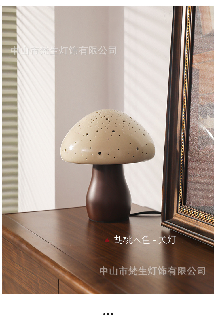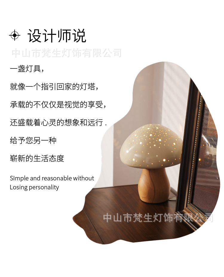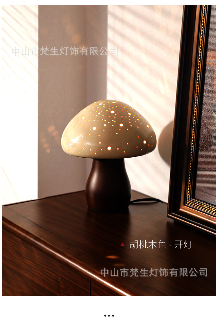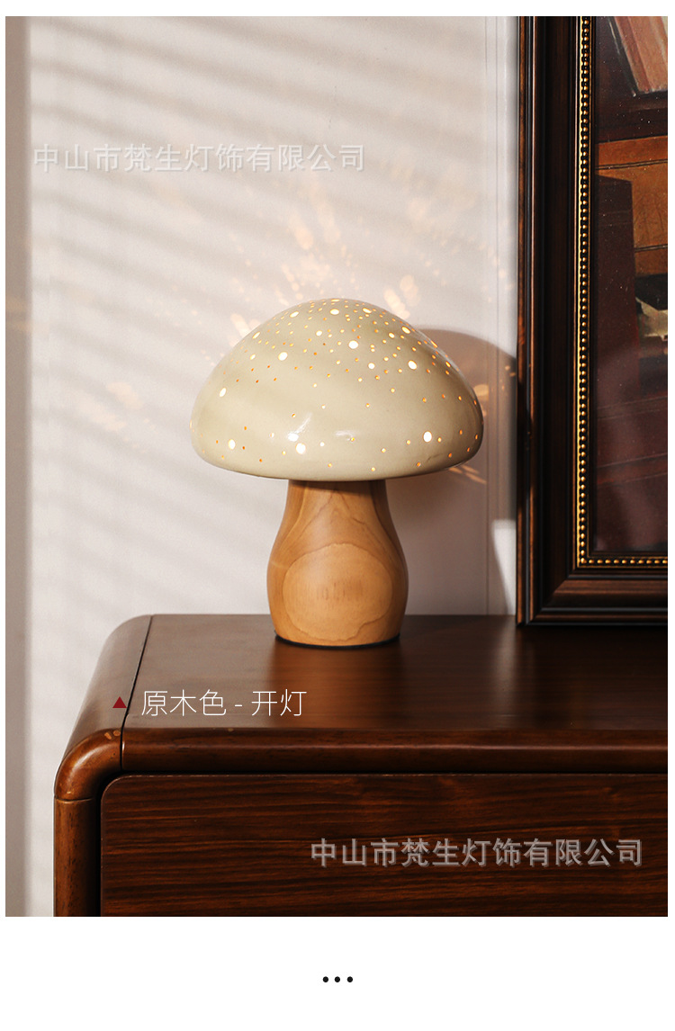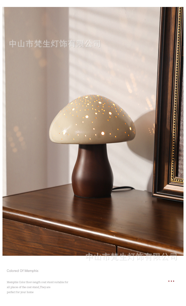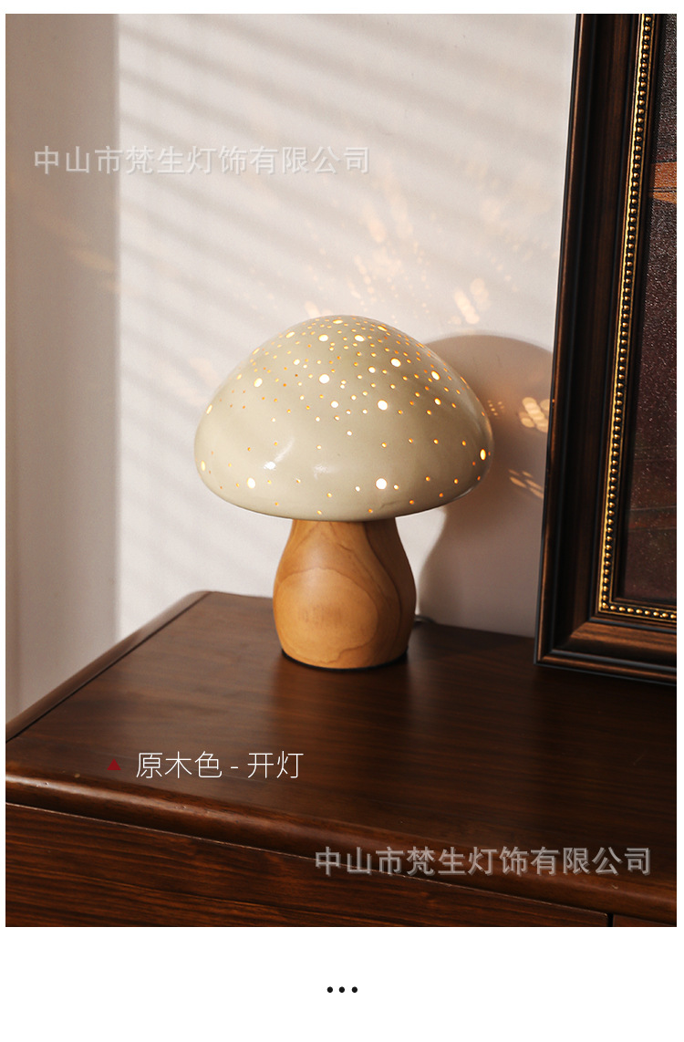중세 스타일 테이블 램프 크리 에이 티브 버섯 침실 머리맡 분위기 램프 현대 간단한 단단한 나무 하이 엔드 장식 테이블 램프스토어 가기