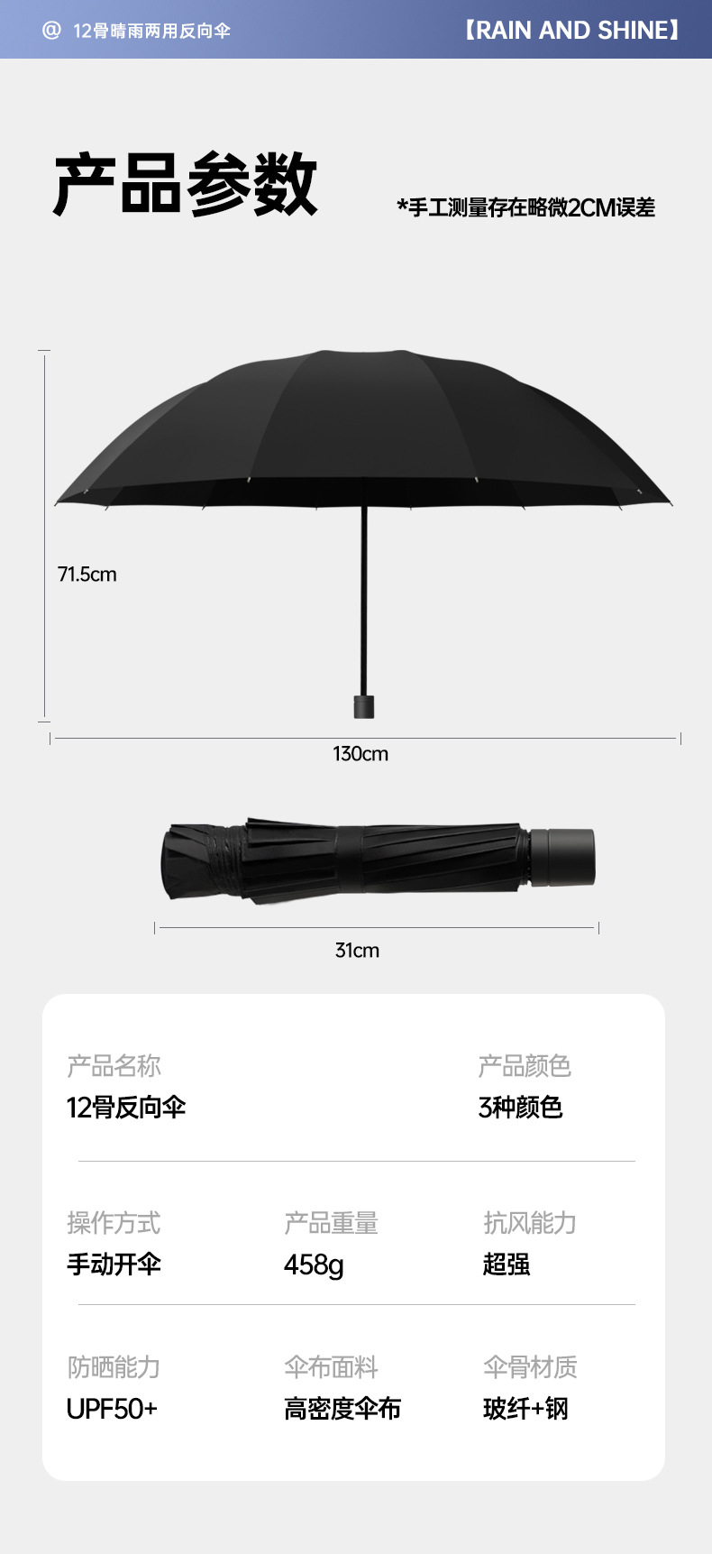 초대형 접이식 방풍 우산, 두껍고 강화된 3인용, 비가 오나 눈이 오나, 맞춤형 자외선 차단 우산