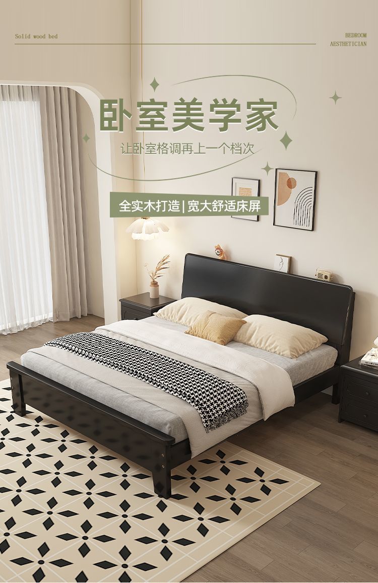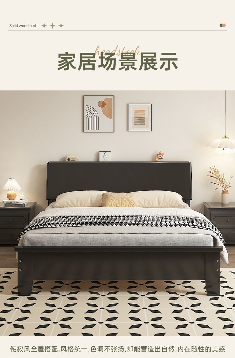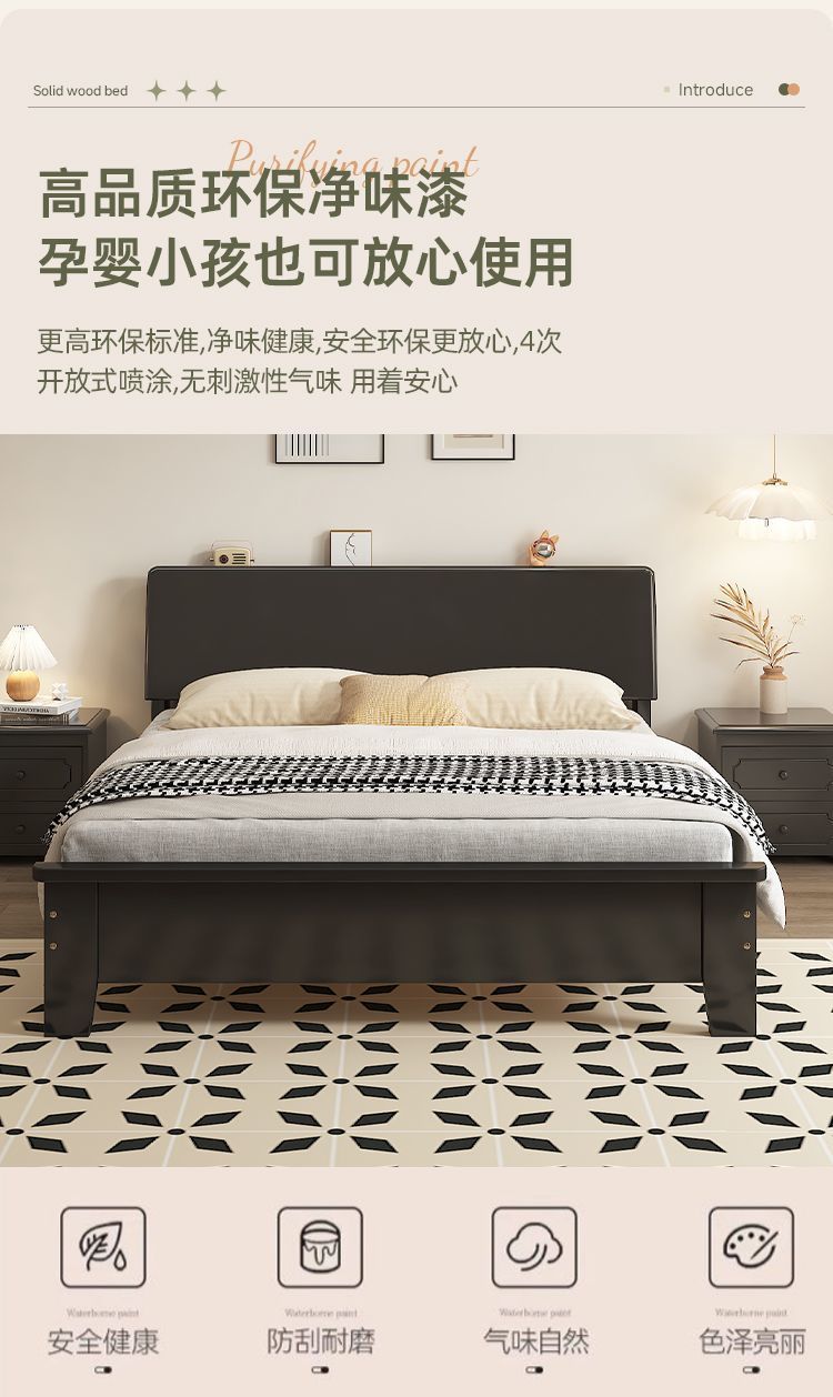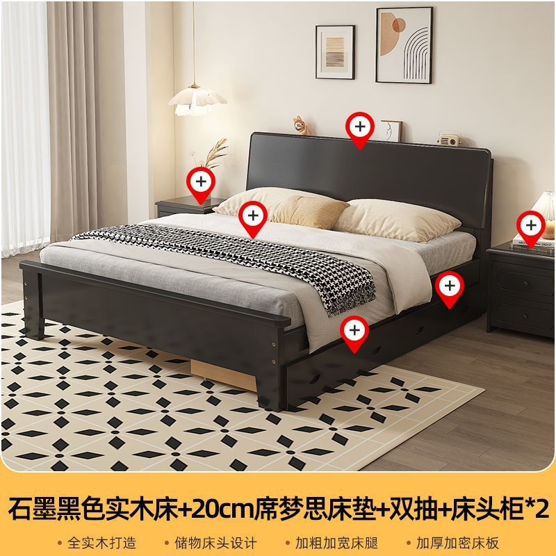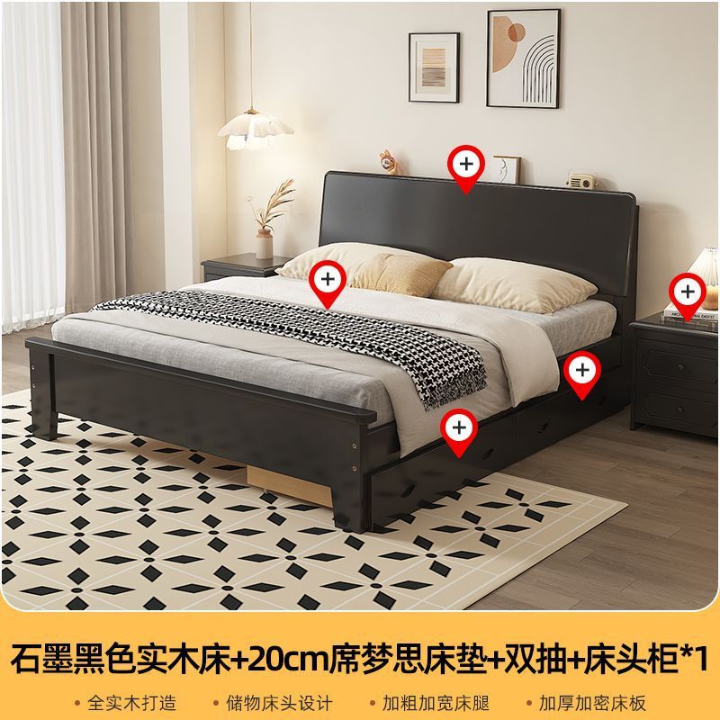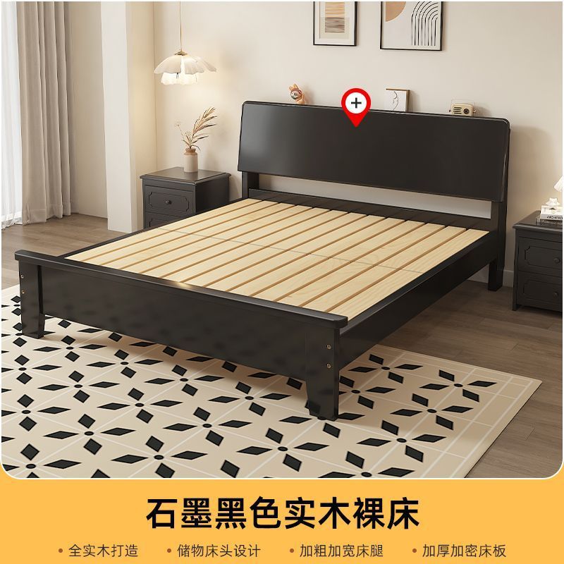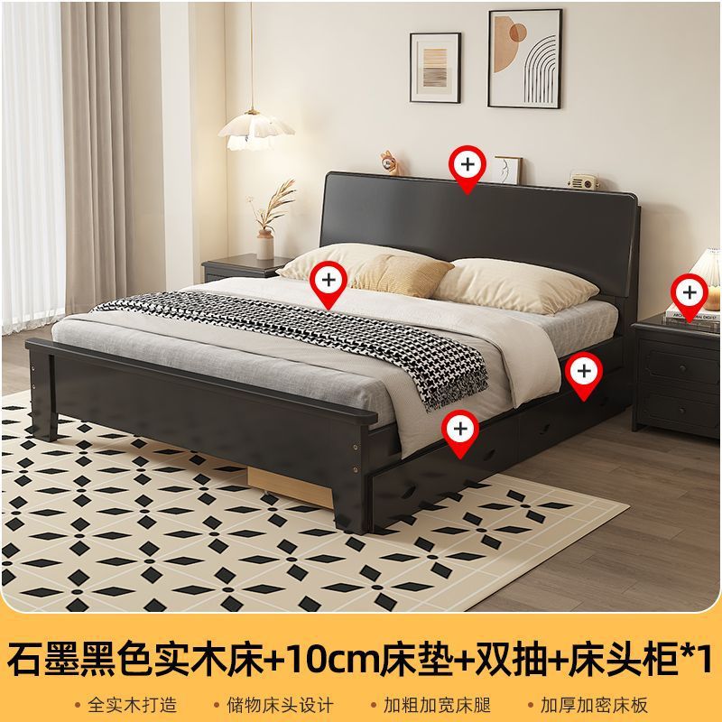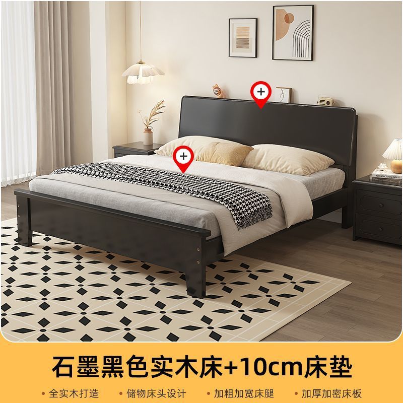 단단한 나무 더블 침대 침실 현대적인 미니멀리스트 전체 단단한 나무 침대 블랙 홈 1.8m 객실 침대 1.2m 싱글 침대스토어 가기