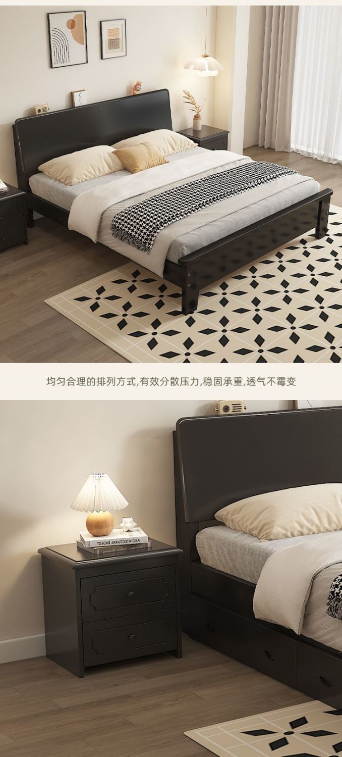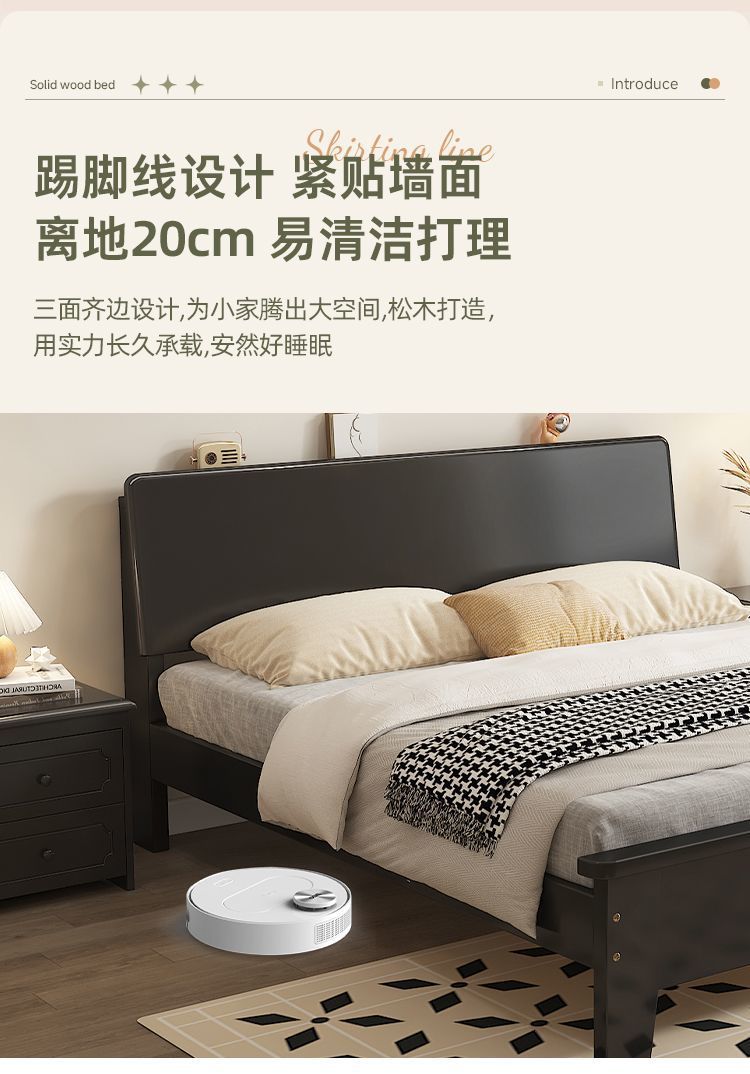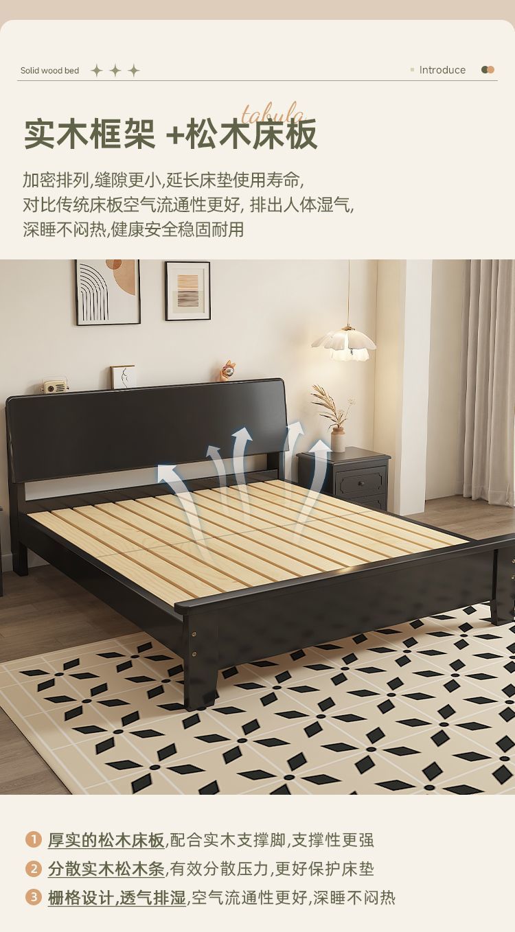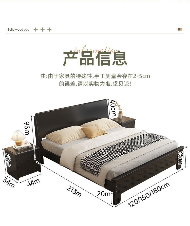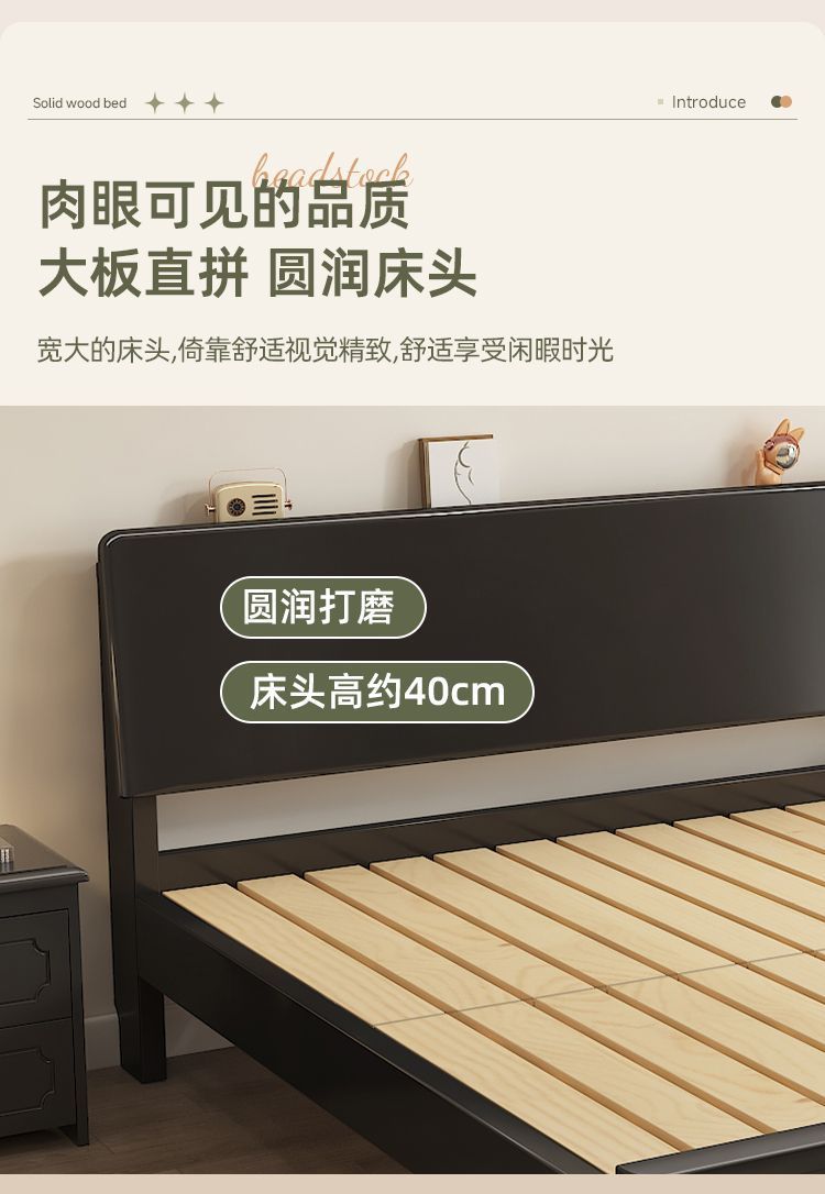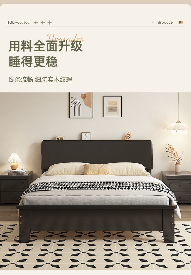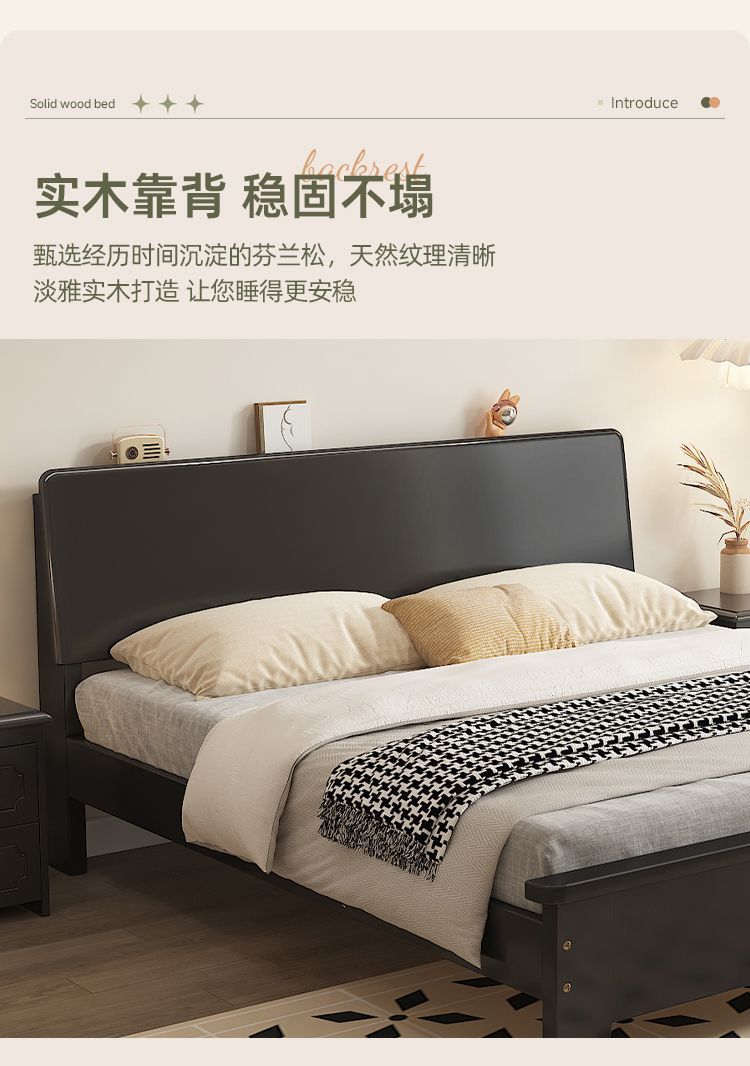 단단한 나무 더블 침대 침실 현대적인 미니멀리스트 전체 단단한 나무 침대 블랙 홈 1.8m 객실 침대 1.2m 싱글 침대스토어 가기