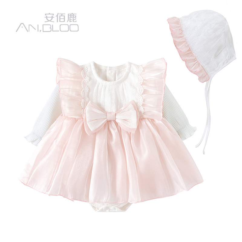 여아 드레스, 아기 드레스, 봄, 가을 큰 리본 공주 드레스, 한 살짜리 여아 옷, 하프 스커트
