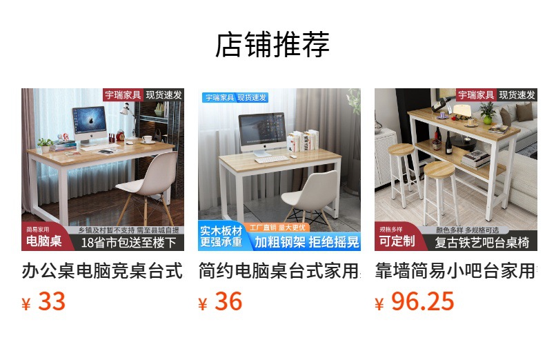 데스크탑 컴퓨터 책상, 가정용 게이밍 책상, 2인용 사무실 책상, 임대용 집 학습용 긴 책상, 심플한 임대용 책상스토어 가기