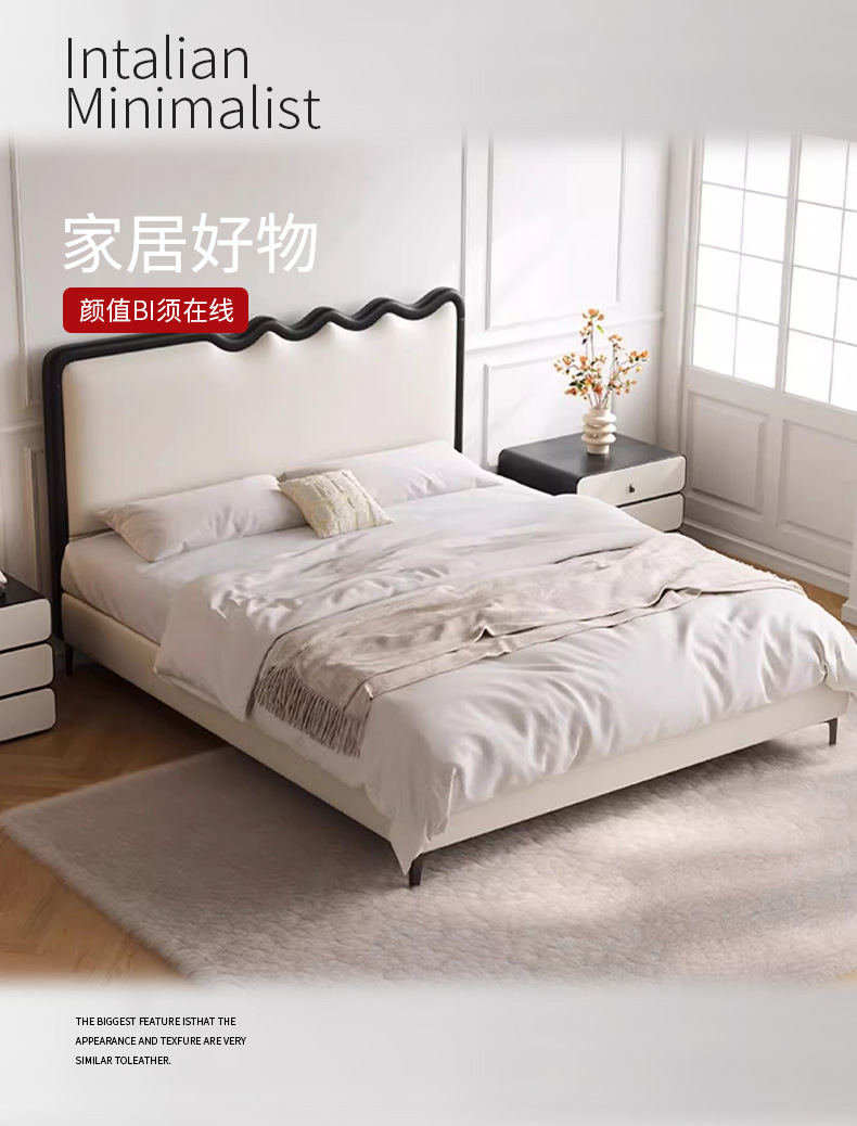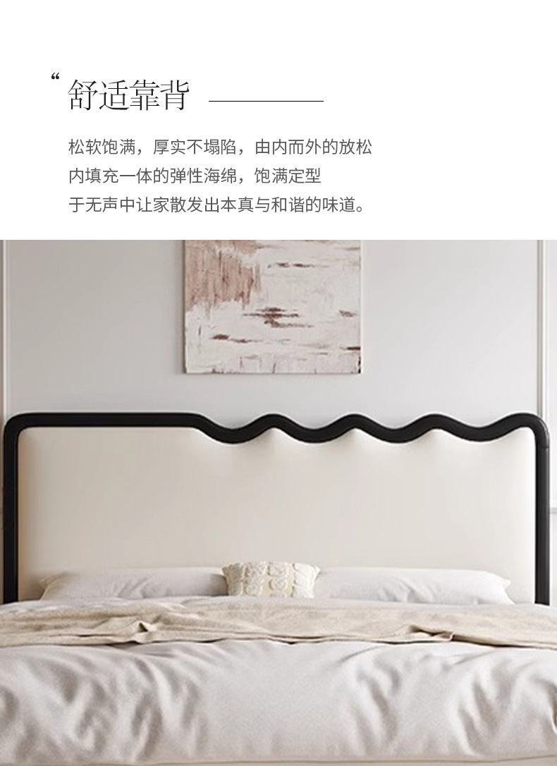 새로운 프랑스 복고풍 크림 스타일 리플 웨이브 침대 마스터 침실 분위기 더블 침대 침실 가구 웨딩 침대 가죽 아트 침대스토어 가기